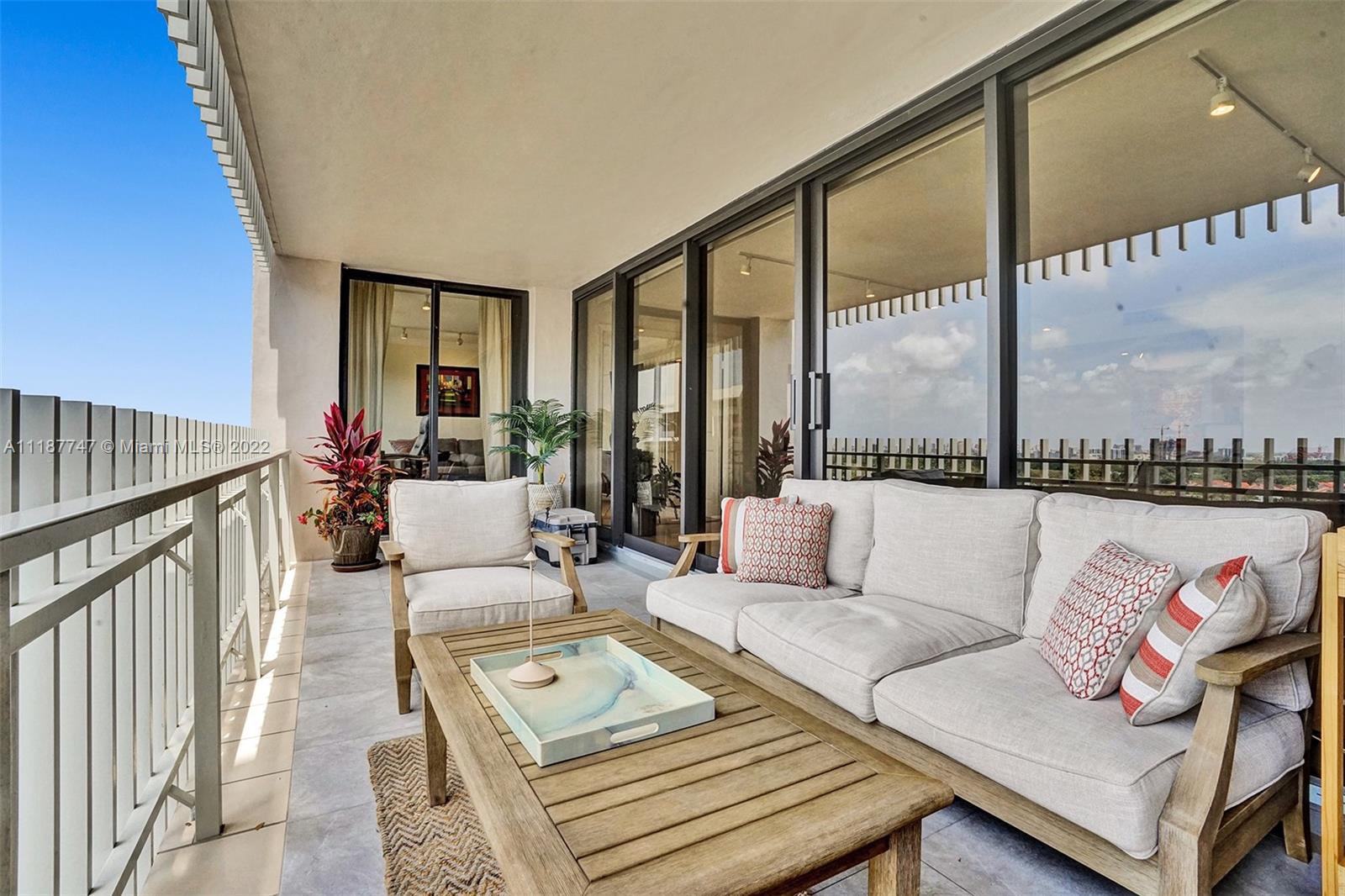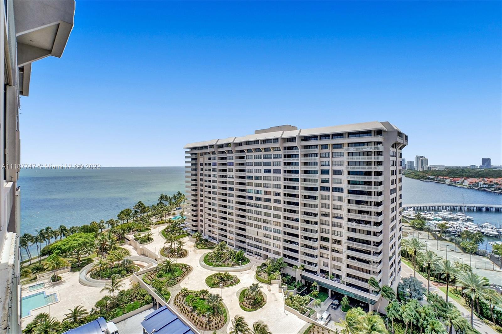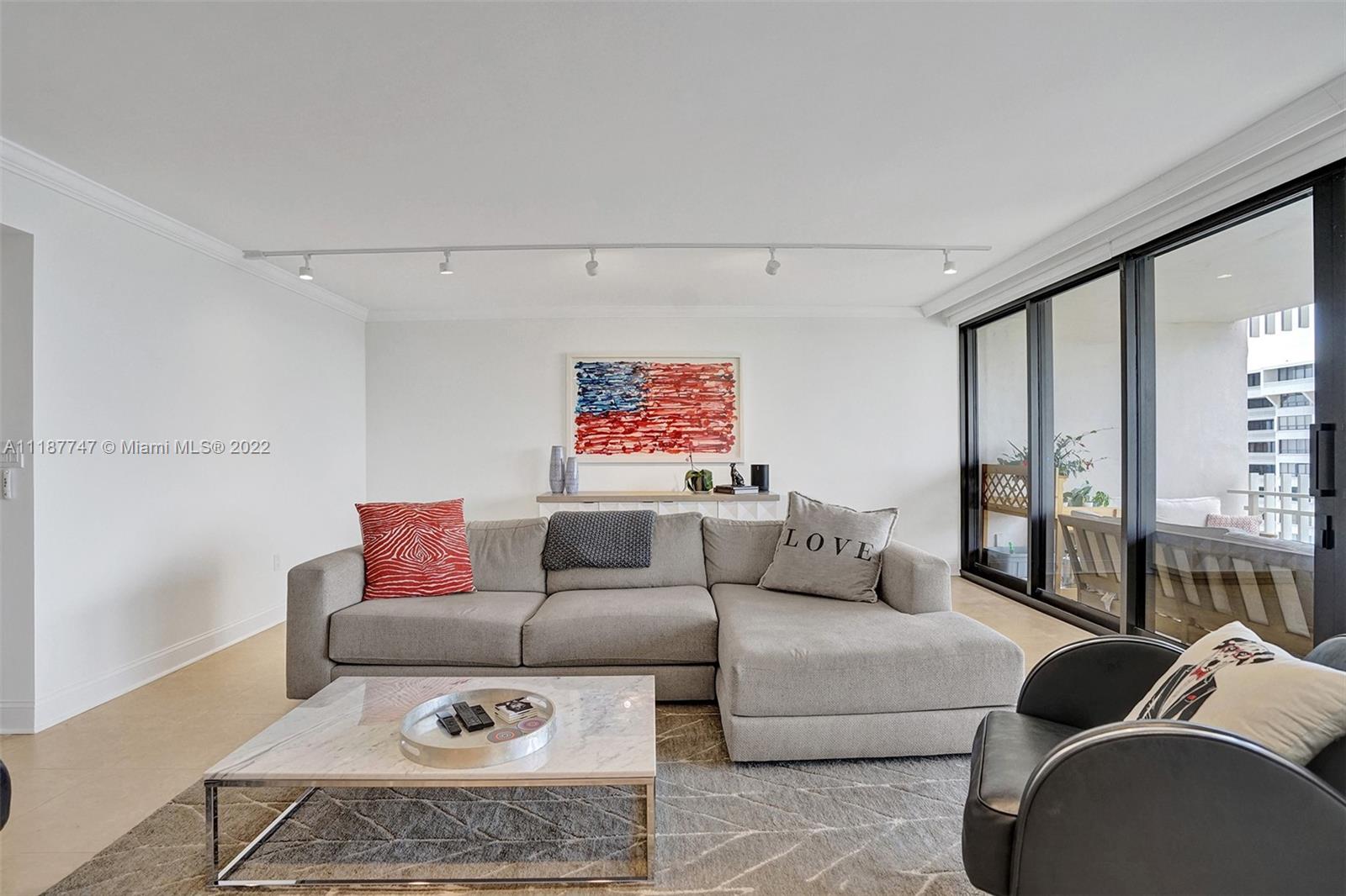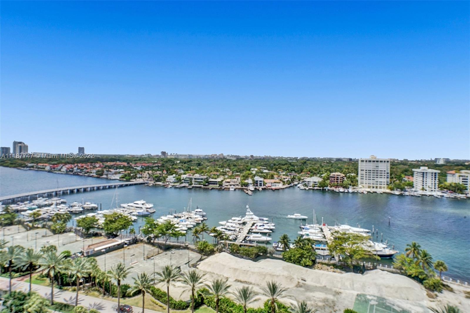 Walk in and feel right at home! This bright and spacious 2 bedroom, 2 bathroom, high floor residence has 1,642 SF of living space, a large open balcony with access from the guest bedroom, and beautiful views of the Bay, Marina, and Downtown Coconut Grove Skyline. Enjoy incredible sunsets all year long! Other features include electric shades, hurricane impact windows & sliding doors, tile floors throughout main living areas and balcony, smart thermostat, custom track lighting, kitchen with black granite countertops, light wood cabinetry and stainless steel appliances. The main bedroom has a walk-in closet and en-suite bathroom with separate tub/shower. Don’t miss the opportunity to live at Grove Isle, an exlusive 20-acre isle in Coconut Grove with 24hr security and resort style amenities.