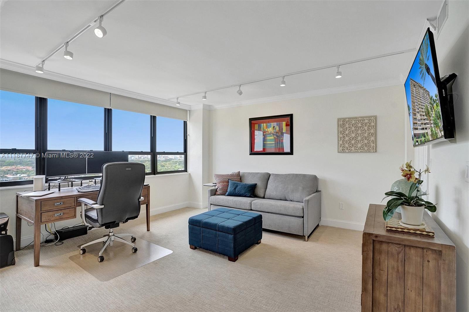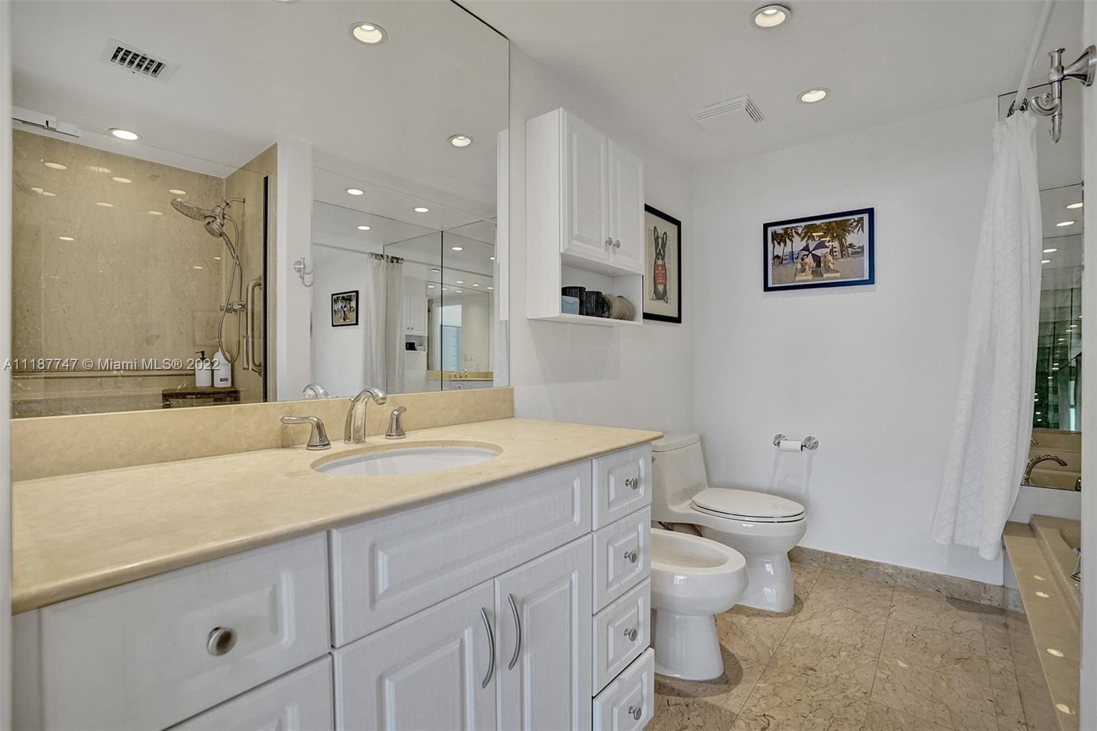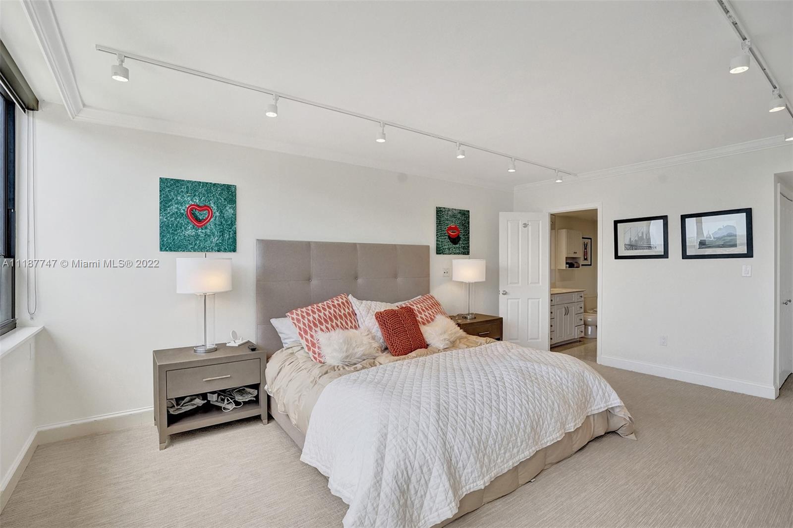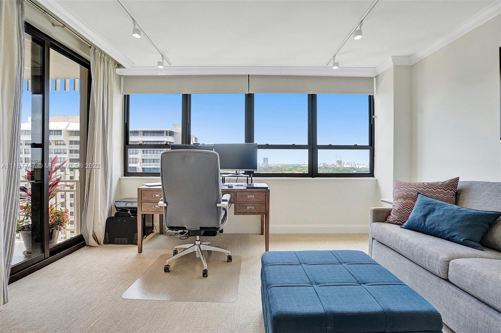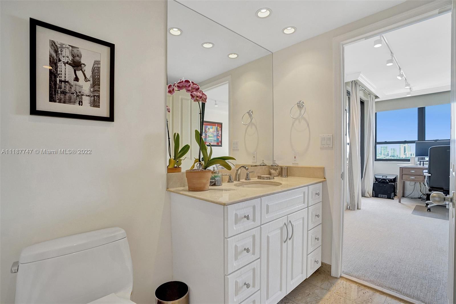 Walk in and feel right at home! This bright and spacious 2 bedroom, 2 bathroom, high floor residence has 1,642 SF of living space, a large open balcony with access from the guest bedroom, and beautiful views of the Bay, Marina, and Downtown Coconut Grove Skyline. Enjoy incredible sunsets all year long! Other features include electric shades, hurricane impact windows & sliding doors, tile floors throughout main living areas and balcony, smart thermostat, custom track lighting, kitchen with black granite countertops, light wood cabinetry and stainless steel appliances. The main bedroom has a walk-in closet and en-suite bathroom with separate tub/shower. Don’t miss the opportunity to live at Grove Isle, an exlusive 20-acre isle in Coconut Grove with 24hr security and resort style amenities.