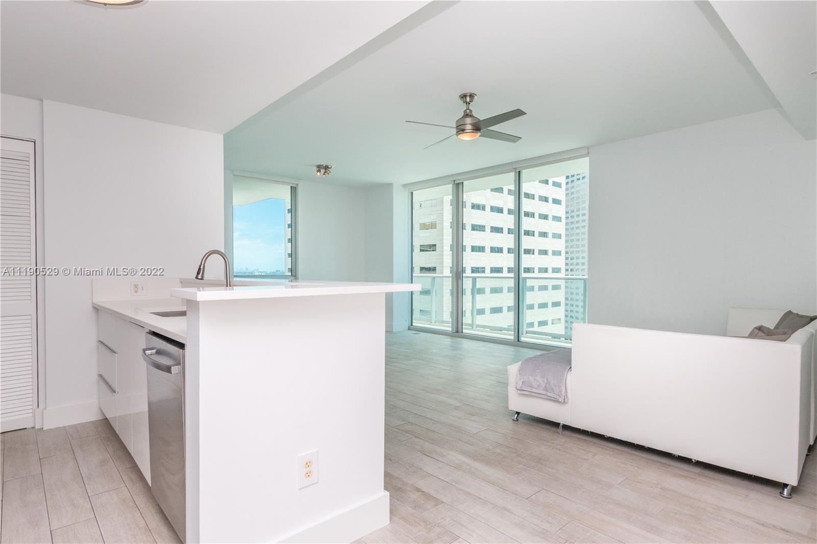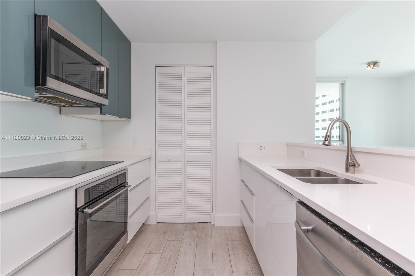 DESIRABLE MET 1 CONDO IN THE HEART OF DOWNTOWN MIAMI. EXQUISITE REMODELED 2/2 CORNER UNIT WITH SPECTACULAR BISCAYNE BAY & CITY VIEWS. NEW KITCHEN CABINETRY WITH PLENTY OF STORAGE, QUARTZ KITCHEN COUNTER TOPS, S/S APPLIANCES, ELONGATED COUNTER BAR, LARGE STACK WASHER & DRYER. OPEN LIVING AREA WITH PLENTY OF NATURAL LIGHTING FROM ITS 9 FT FLOOR TO CEILING WINDOWS. SPACIOUS L-SHAPED BALCONY OVERLOOKING CITY AND BISCAYNE BAY. NEW CERAMIC FLOORS THROUGHOUT. UPGRADED MASTER BATHROOM WITH NEW WHITE WOOD VANITY, TILED SHOWER, SEPARATE TUB. 2ND BATHROOM UPGRADED WITH NEW FLOATING VANITY. SPACIOUS BEDROOMS WITH WALK-IN CLOSETS. 5 STAR AMENITIES INCLUDING POOL, FITNESS CENTER W/YOGA STUDIO, BUSINESS CENTER, SPA W/ SUANA, CHILDREN'S PLAY ROOM, CLUB ROOM, ON SITE NOVIKOV RESTAURANT AND MUCH MORE!