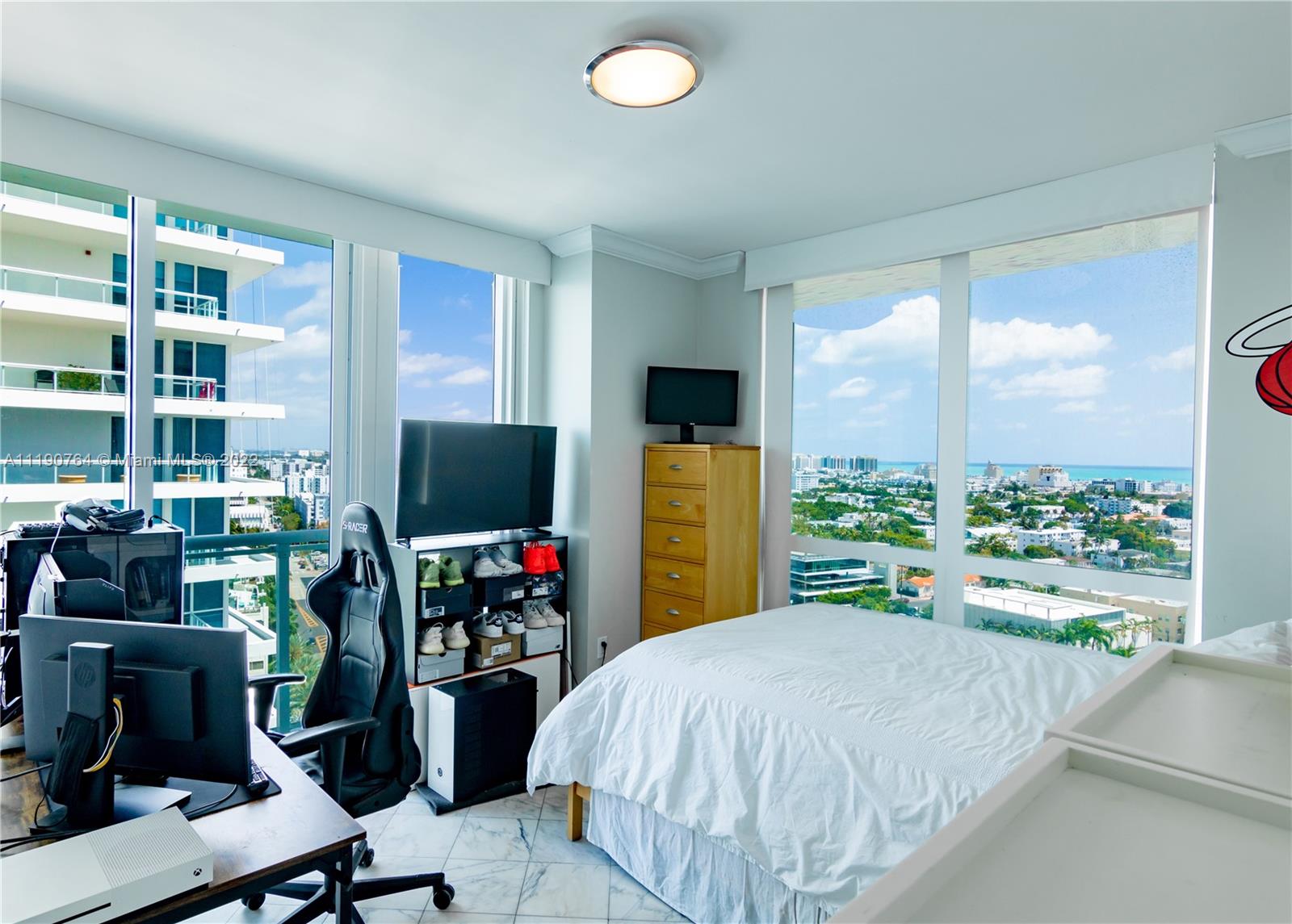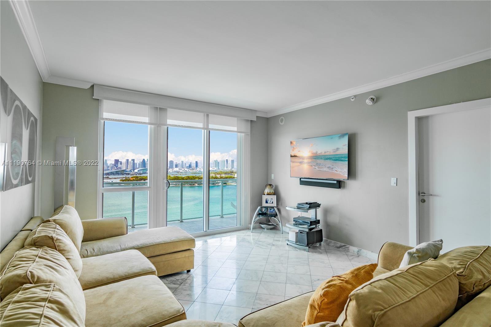 Stunning corner 2 bed/ 2 bath unit in Bentley Bay South Tower with direct unobstructed bay and Downtown skyline views. Enjoy gorgeous views of the bay and ocean from the large corner balcony. Unit features a spacious living area, blackout shades throughout, walk in closet in the primary suite, and 9 foot ceilings throughout. Residents appreciate 24 hour security, concierge, valet and A-class amenities including an infinity edge pool, two jacuzzies, sauna & steam room and newly renovated fitness center. Directly across from the new 3-acre West Ave Miami Beach Park.