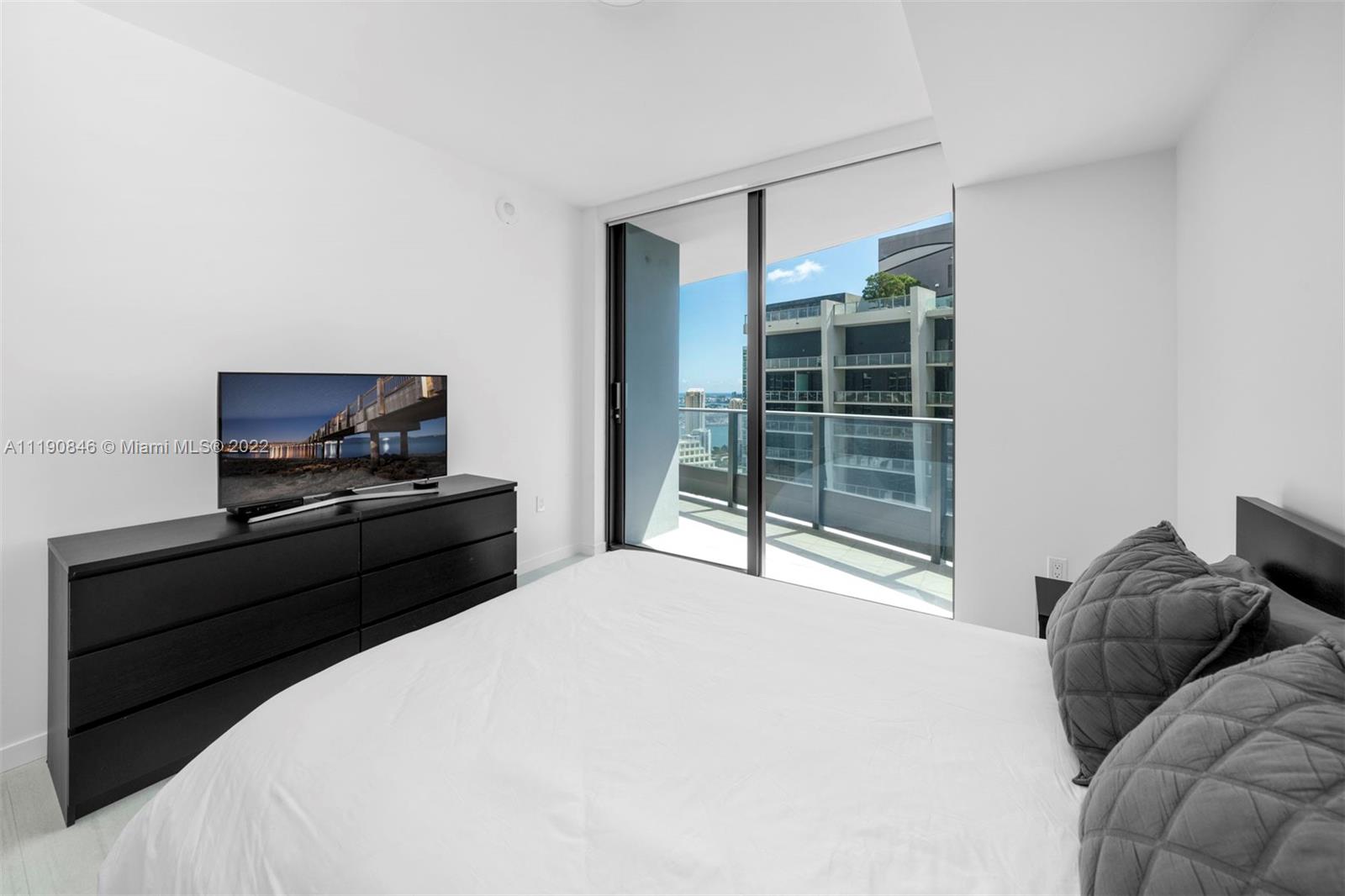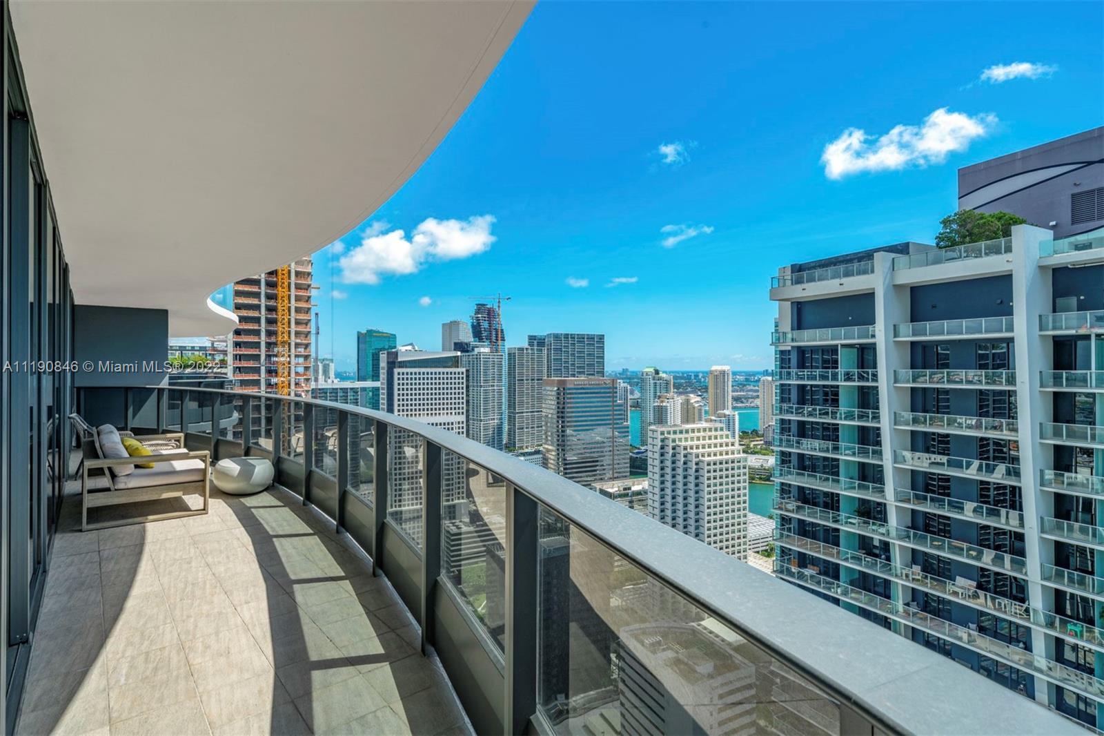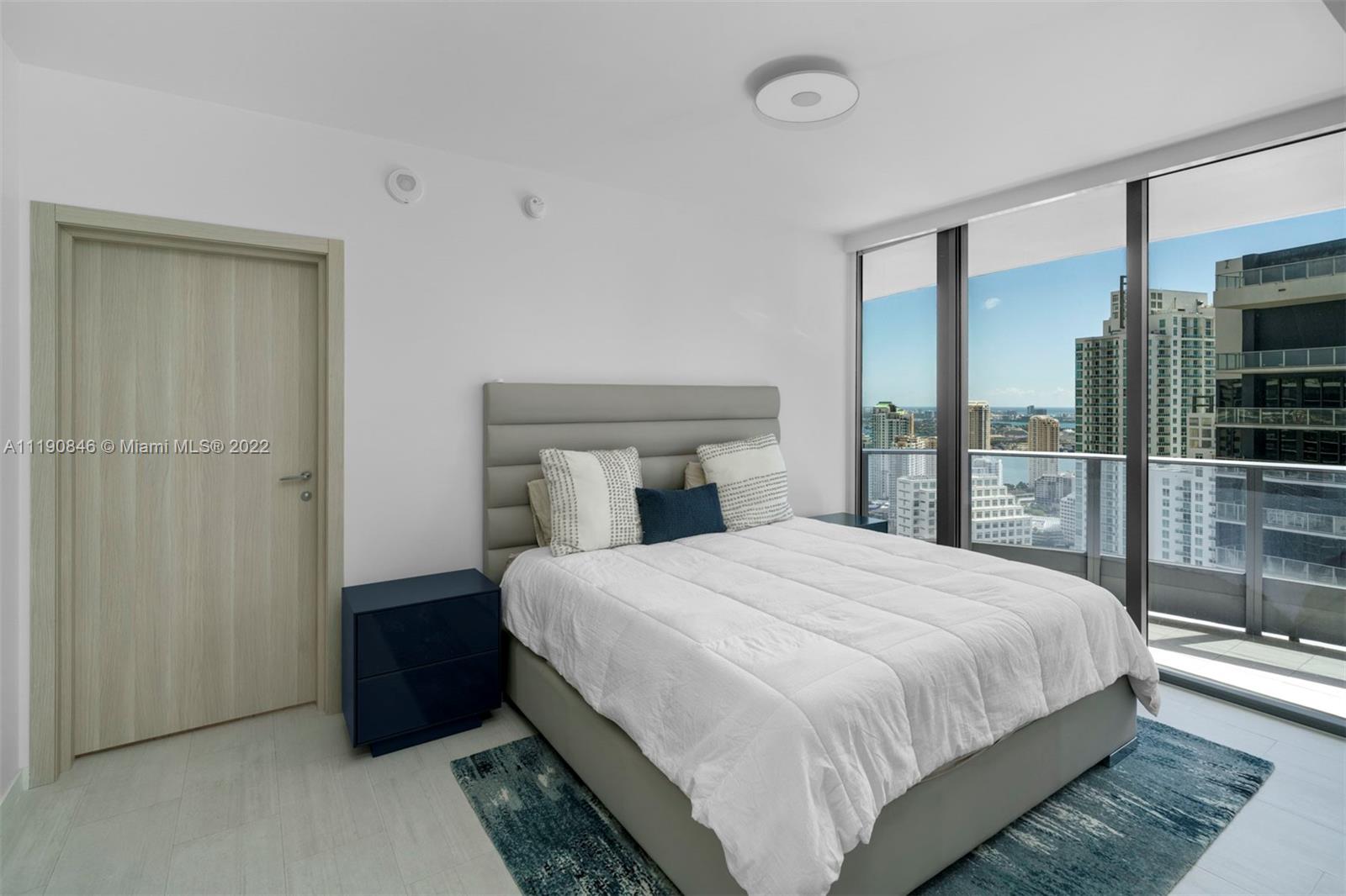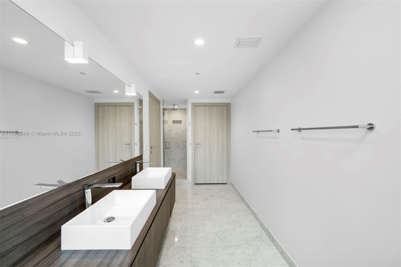 Located in the heart of Brickell, this contemporary and luxurious 2-bedroom, 2.5-bath condo is a must-see! Inside the open layout, walls of glass frame water views and fill every corner with sunlight. Custom wallpaper and upgraded light fixtures lend a sophisticated feel to the main gathering areas. Kitchen features include high-end Miele appliances, Snaidero cabinets, a peninsula with seating, and a large pantry with built-in storage. Electric blinds provide privacy when you retire to your bedrooms and custom closets offer plentiful storage. Marble is on display in the primary bedroom with a walk-in rainfall shower. Building has premium amenities with two pool decks, 64th floor gym and spa.