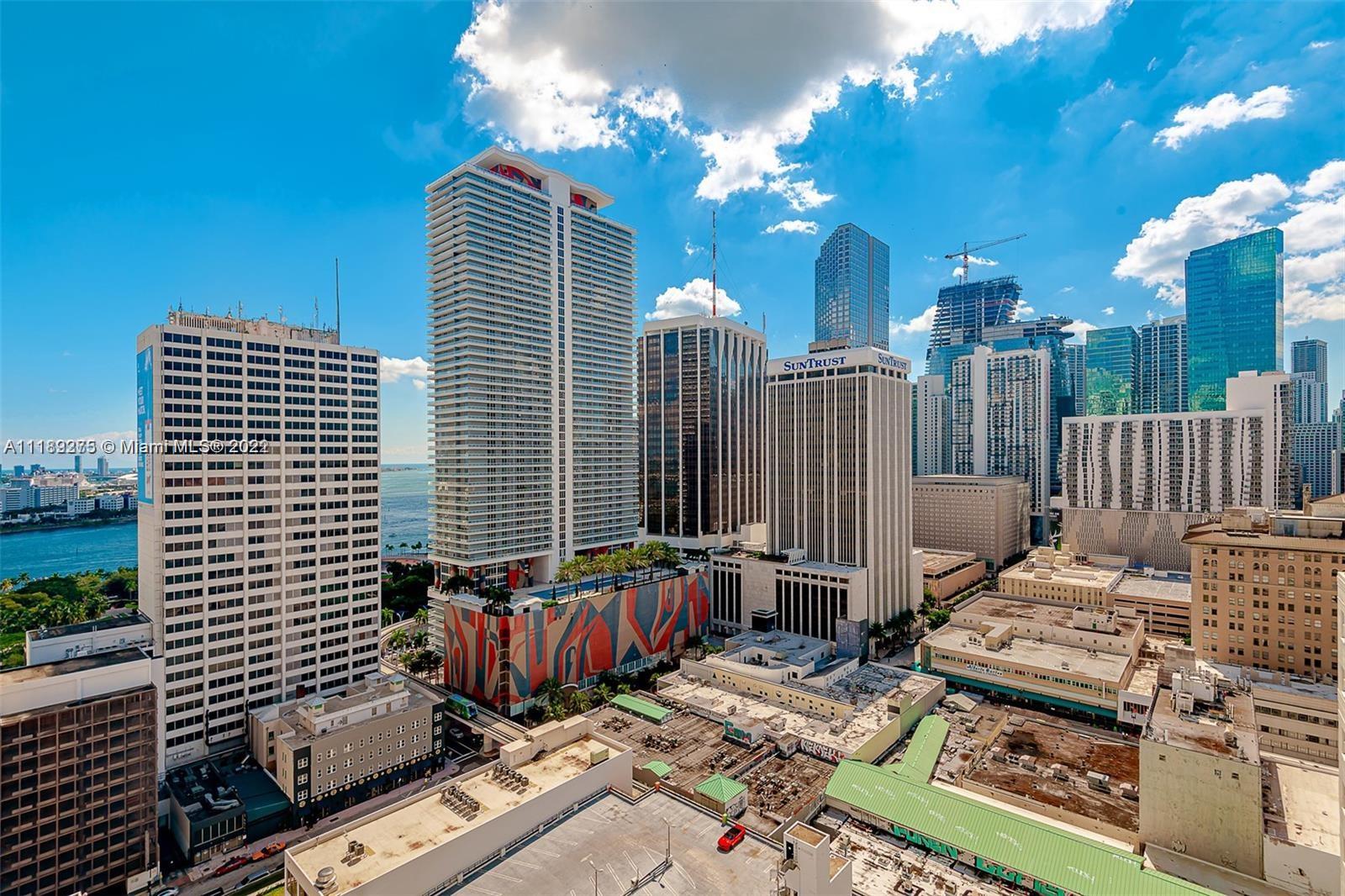Experience Miami Downtown living at its best! Spectacular sunsets and panoramic views of the skyline from this spacious 2/2 corner unit. Interior features include high ceilings, stainless steel appliances, modern cabinetry, polished concrete flooring and washer/dryer in the unit. Impact windows and doors. Internet & cable included. Pet friendly! Amenities: 2 Pools, Spa, Sauna, party room w/billiard, WiFi, kitchen, and fitness center with panoramic views on the 36th floor! 24/7 front desk security. Parking lot across the street. Located in the heart of Downtown Miami with easy access to Metro Mover, MDCC, Miami Arena, Bayside, Performance Arts Center, Brickell, Design District, and more! Renting is allowed right away, minimum 30 days, 12 times a year. Showings begin on Monday, 4/25/2022!!!
