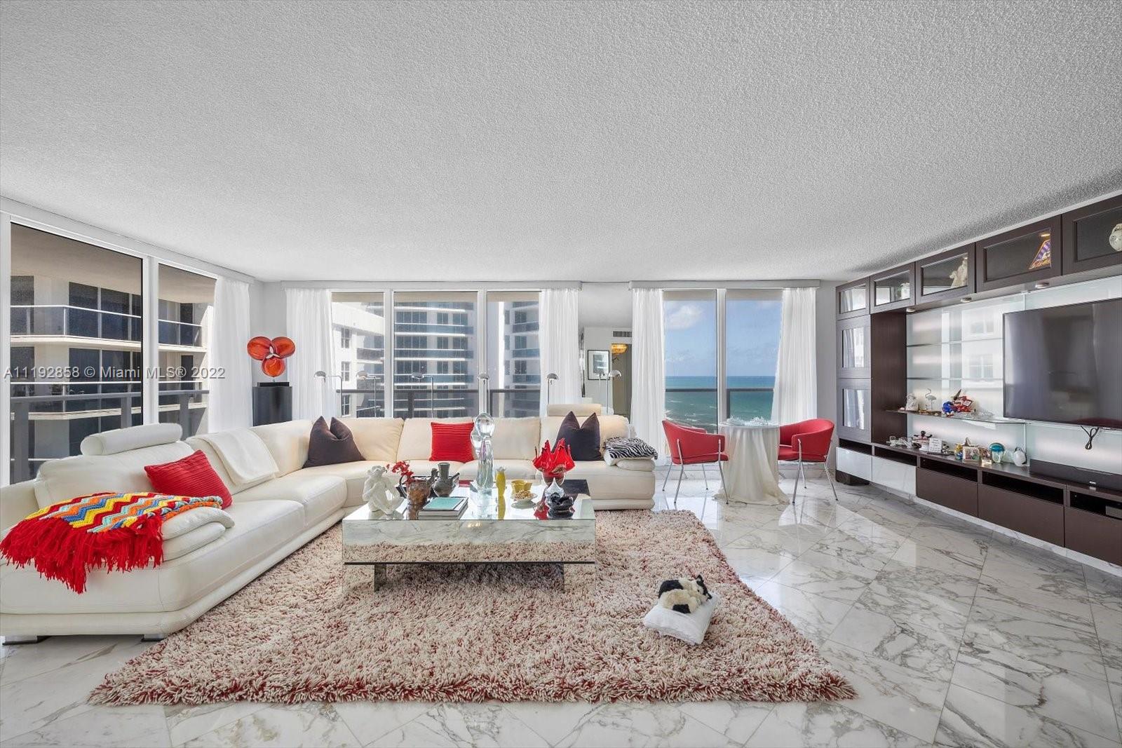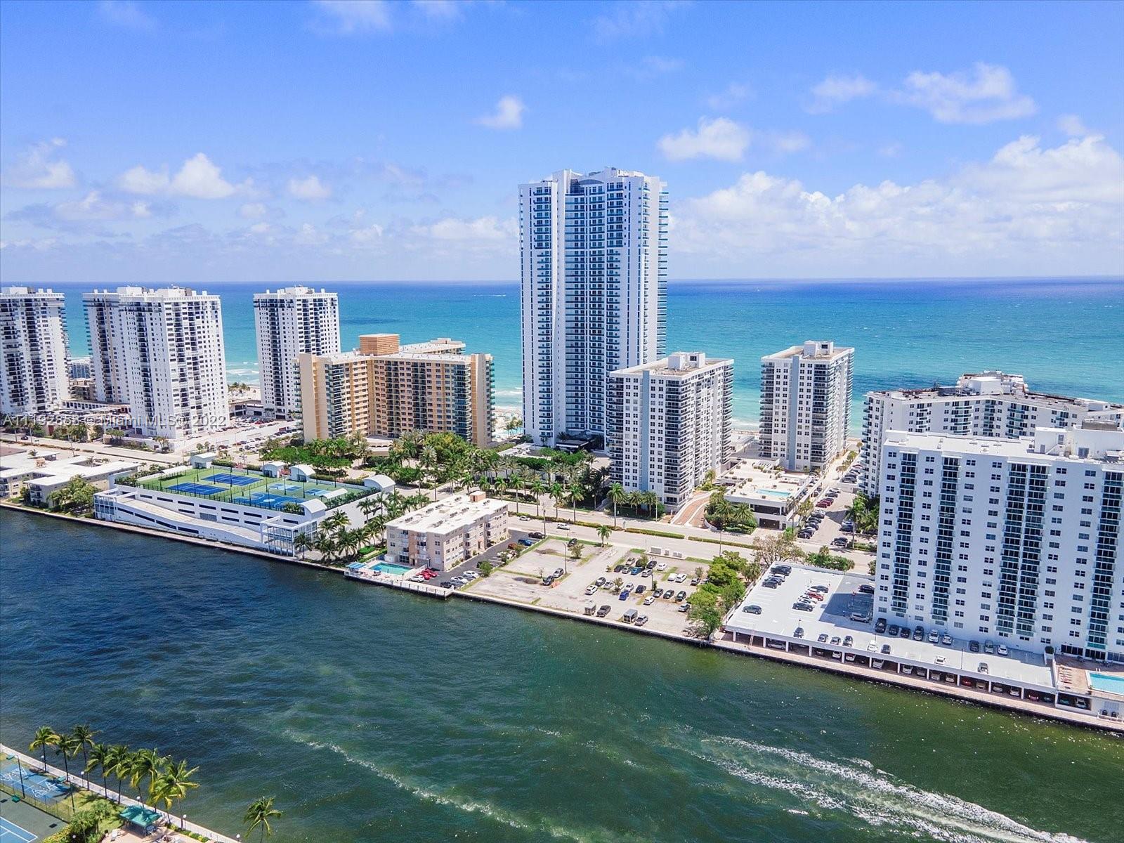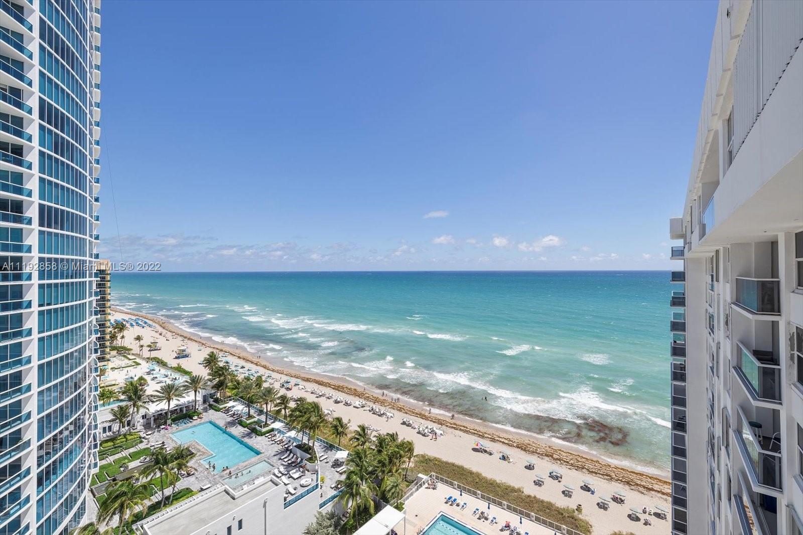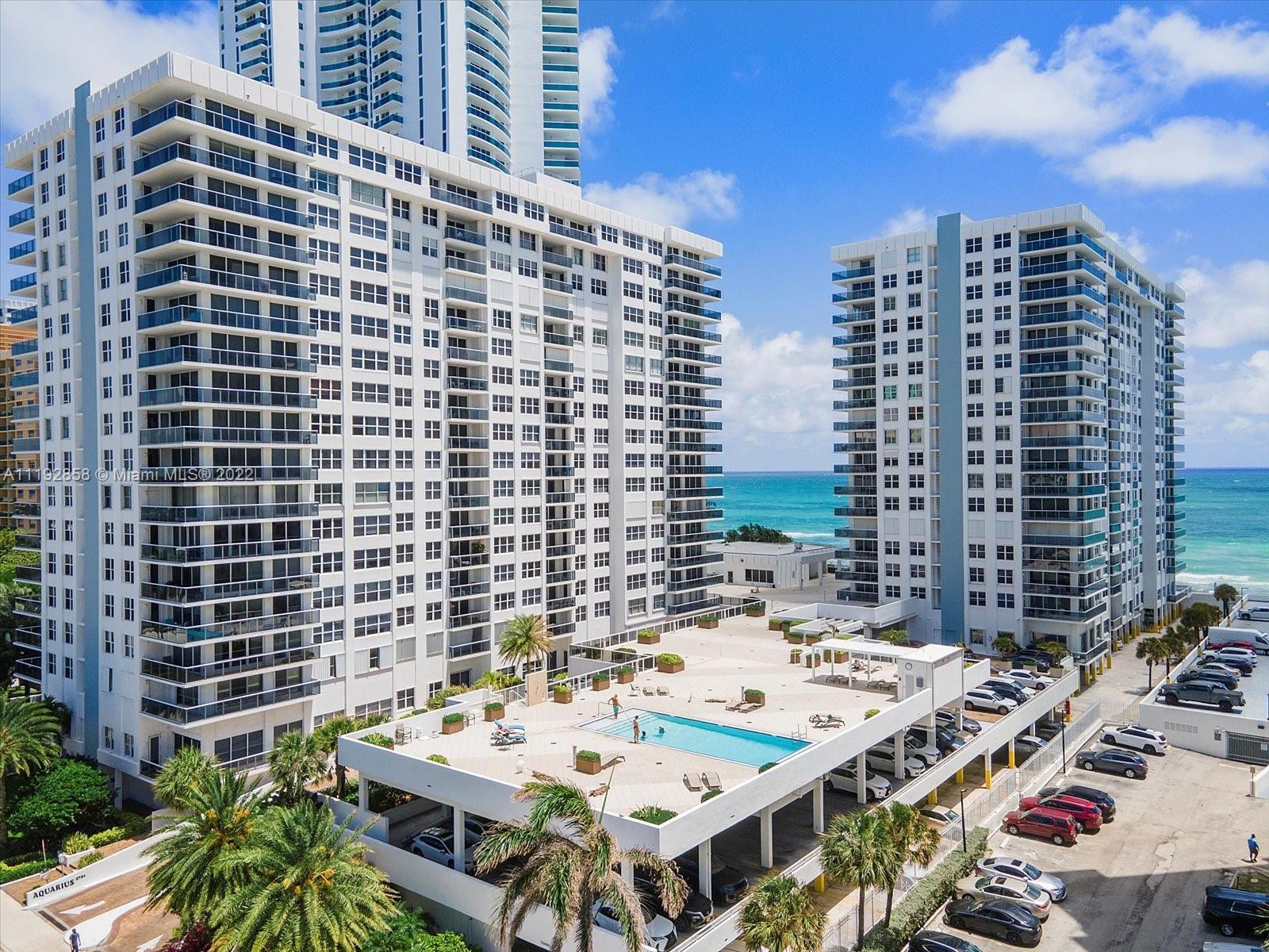 Stunning ocean and intracoastal views from this very spacious corner unit with a wraparound balcony at Aquarius Condominium. Unit 1801S offers 2 large bedrooms with 2 bathrooms, marble and tile floors throughout, walk in closets, washer and dryer, floor to ceiling high impact windows and doors and more! Aquarius amenities include 24-Hour front desk, valet, fitness center, oceanfront swimming pool, sunset swimming pool, beach service, game room with billiards and ping pong, lounge with bar, beauty salon, Italian restaurant and library. Building has recently completed renovations to the pool areas, hallways, elevators and added glass balconies to all units. Walking distance to the Hollywood Boardwalk.