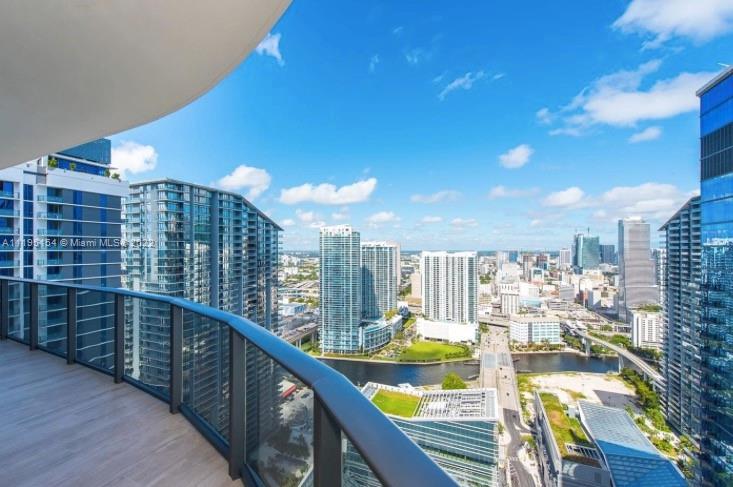 Breathtaking views from every room! Highly coveted corner unit with ensuite bathrooms on a high floor. 3 full master suites plus guest half bath and a separate den/office area.This luxury unit features a huge wraparound balcony with skyline, river and ocean views. Wood-tile floors, floor to ceiling windows and high-quality appliances together with the round architecture add to the luxury touch. This building boasts two floors of amenities including a rooftop pool, lab pool, spa, business and clubrooms, gym, kidsroom and a private cinema. Directly next to the shops at Mary Brickell Village & Brickell City Centre.