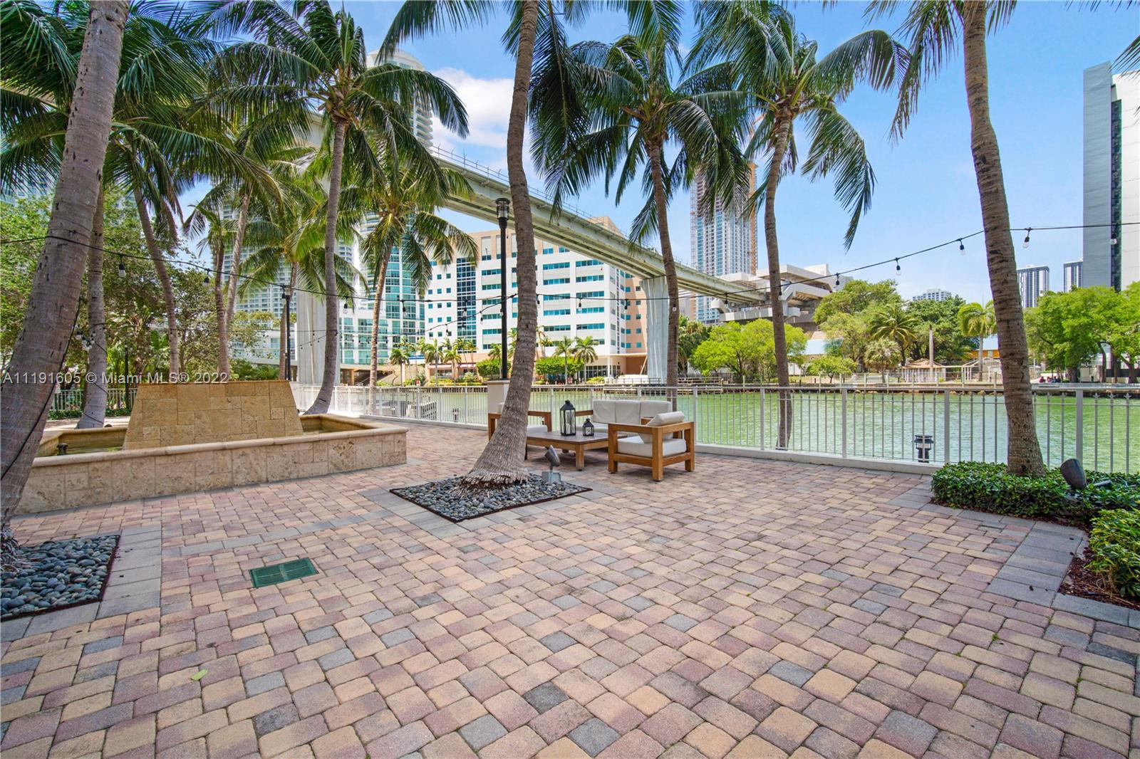 Very well maintained unit, rarely used during the past few years. It has a split bedroom plan with similarly sized rooms, washer/dryer in the unit and a good sized wide open balcony with westerly views of the river & skyline. Plenty of closet and cabinet spaces too! BOR is conveniently located next to a People Mover station, a block from Brickell Avenue and also from Brickell City Centre. There is access to a brick dock & lovely patio with seating, ideal for boat watching on the river. The complex has resort-like amenities that include several floors of gyms, a spa area, business center, pools and BBQ area. There are two separate association fees that total $921.72. Building is popular for rentals and great for investors too. There are additional move-in fees.
