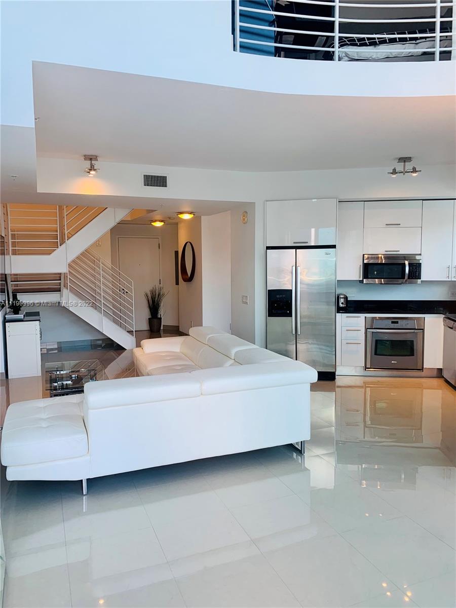 Come see this beautiful two-story loft-style corner unit, featuring double-height ceilings, expansive glass windows, and Northeast exposure, with an awe-inspiring view of both the bay and city skyline. No obstructions! This residence features 2 second-story bedrooms with walk-in closets. One bedroom features an ensuite master bathroom, and the other a full bathroom as well, including a view of the city from the shower. The first floor features an open living area, as well as a Den with a full bathroom with shower enclosed. It can easily be converted to a third bedroom. Open, modern kitchen blends with the living/dining area. Spectacular floor to ceiling glass creates a dramatic look over the city, with wrap-around balcony on the first floor, and additional balcony on the second floor.