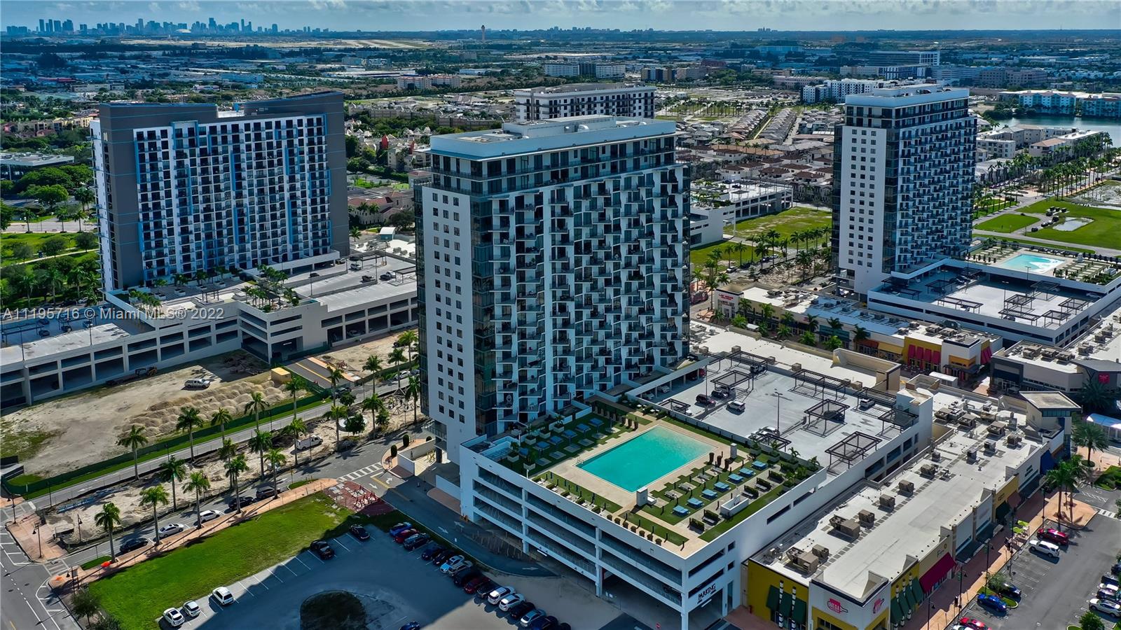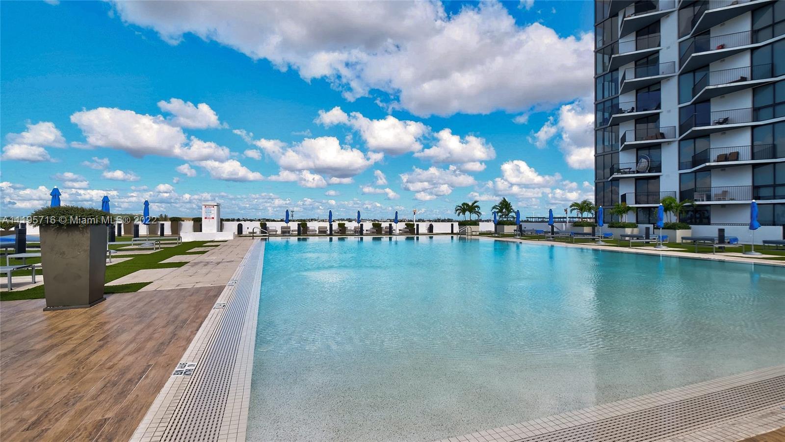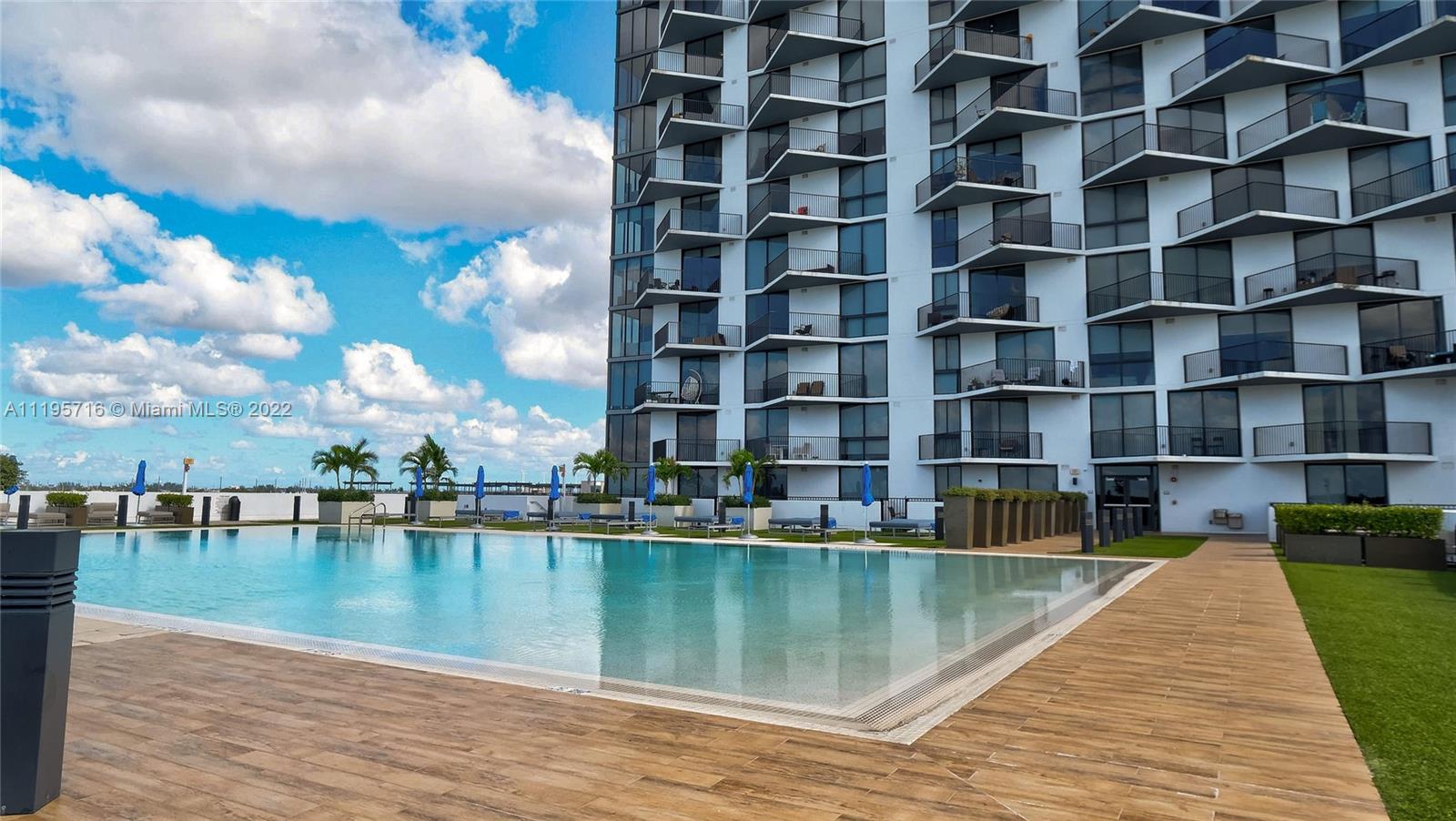 Luxury Downtown Doral living! Shops & restaurants at your doorstep. Lobby attended building with valet parking, complete exercise room with spinning room & sauna, resort style pool & deck. Unit features one bed & one bath plus den, high ceilings, stainless steel appliances with quartz counters in kitchen, walk in closet with built-ins, & amazing views of the golf course and pool. One assigned parking space, washer & dryer in unit, & additional storage unit.