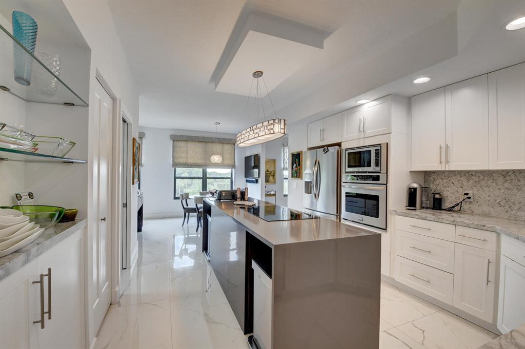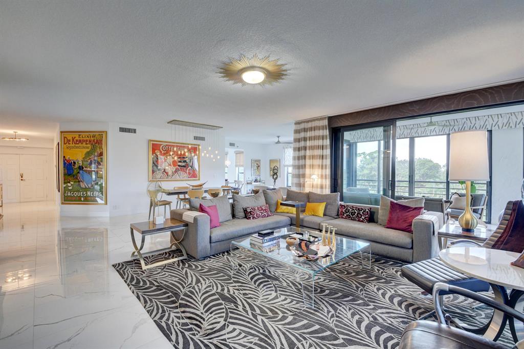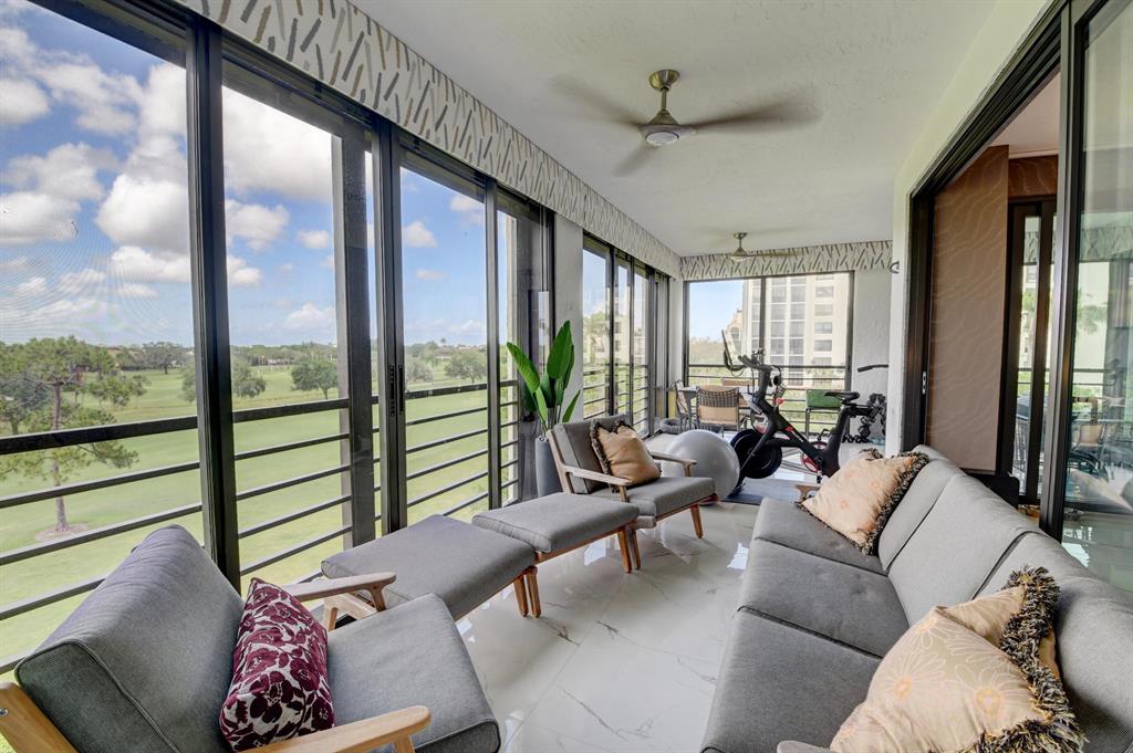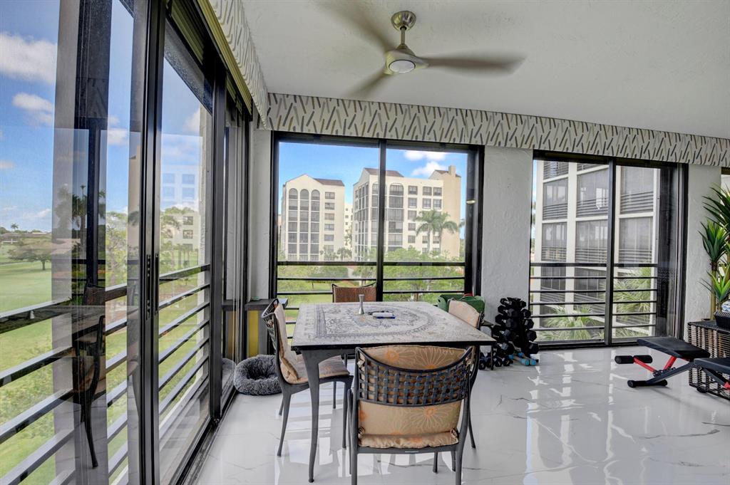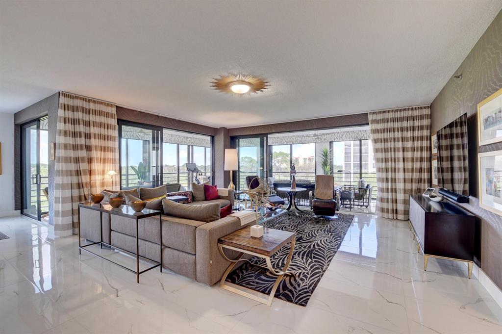 Spectacular 3/2.5 fully renovated condo on 4th floor in upscale building of Boca Pointe! Walk right in and be swept away by the golf and lake views from the wrap around terrace. Includes 2 parking spaces and 2 storage units (typical condo only has 1 of each). Floor plan features foyer, split bedrooms, 2 custom fitted closets in master, walk in storage closet, double sinks plus separate tub and shower in master bath, large kitchen with breakfast area plus home office or sitting area, living room and formal dining room, and separate laundry room. Impact glass on all windows and interior sliders. Renovated in the past 2 years. Porcelain floors throughout condo. Imperial Royale building has locked entrance, lobby, clubroom, renovated pool and patio, manager on site