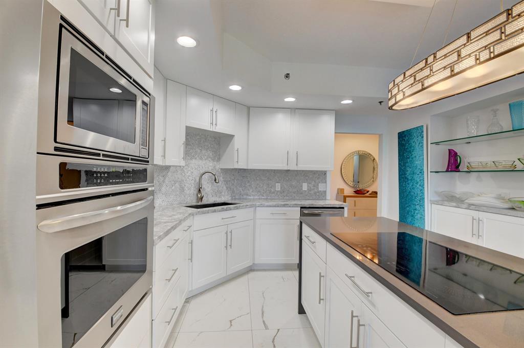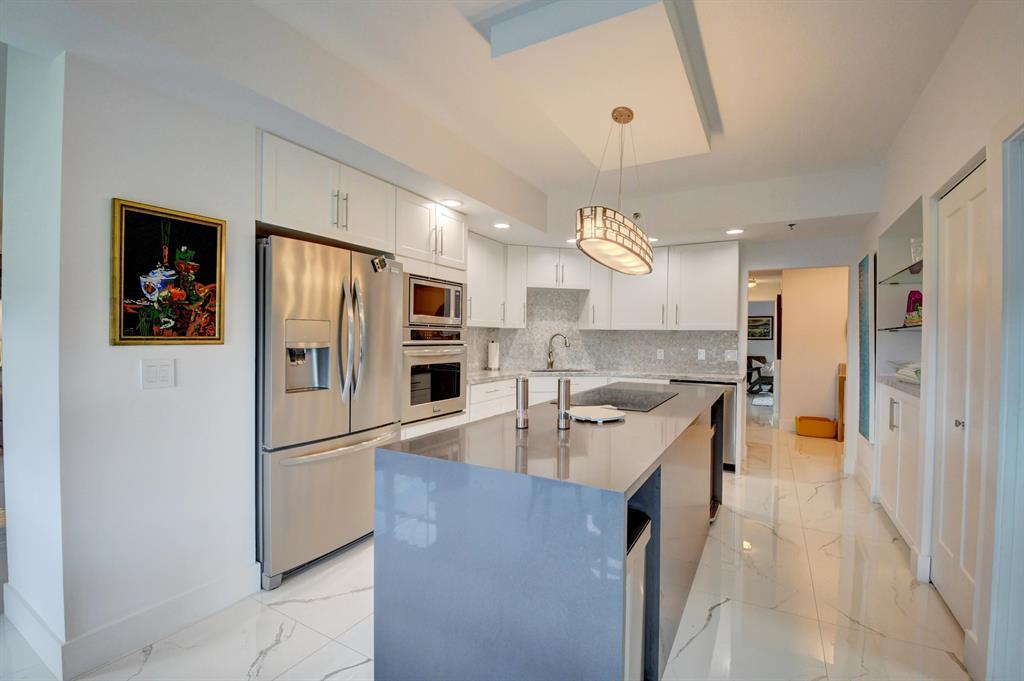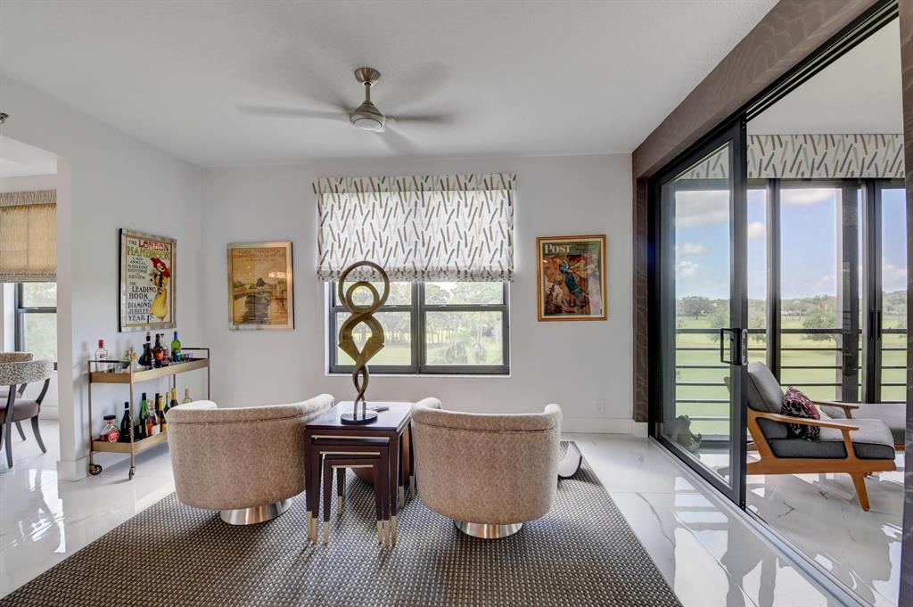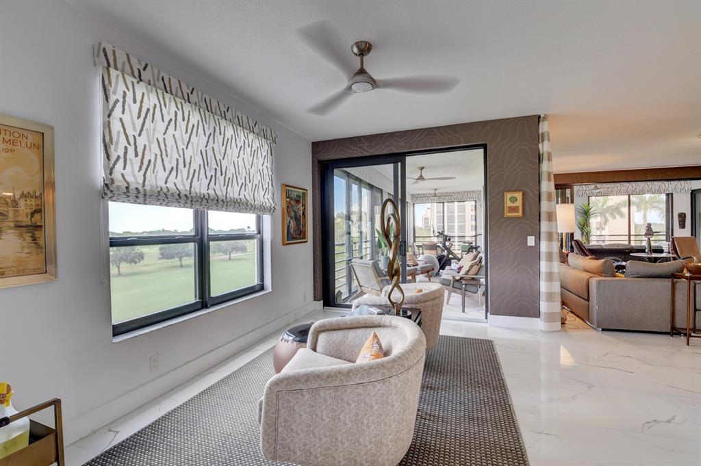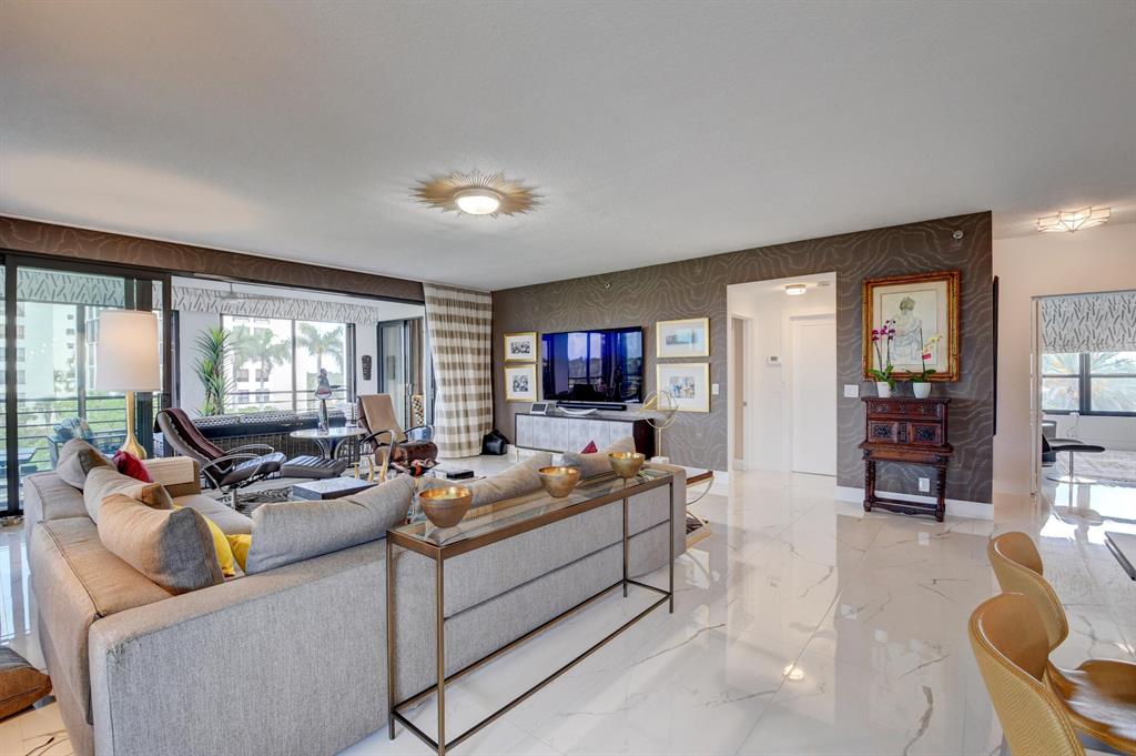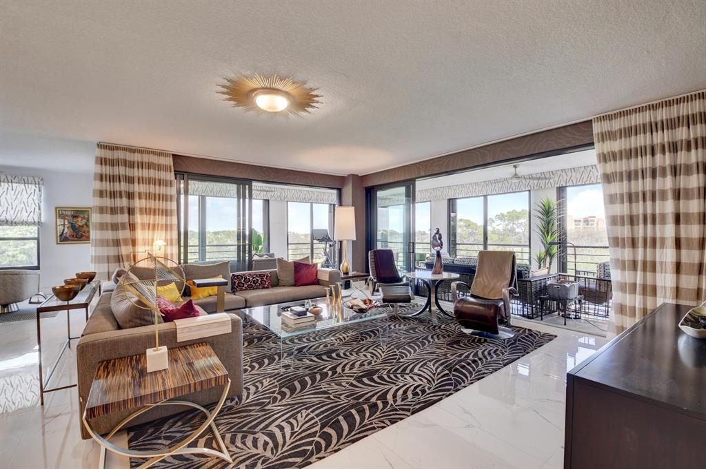 Spectacular 3/2.5 fully renovated condo on 4th floor in upscale building of Boca Pointe! Walk right in and be swept away by the golf and lake views from the wrap around terrace. Includes 2 parking spaces and 2 storage units (typical condo only has 1 of each). Floor plan features foyer, split bedrooms, 2 custom fitted closets in master, walk in storage closet, double sinks plus separate tub and shower in master bath, large kitchen with breakfast area plus home office or sitting area, living room and formal dining room, and separate laundry room. Impact glass on all windows and interior sliders. Renovated in the past 2 years. Porcelain floors throughout condo. Imperial Royale building has locked entrance, lobby, clubroom, renovated pool and patio, manager on site