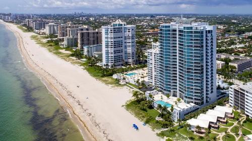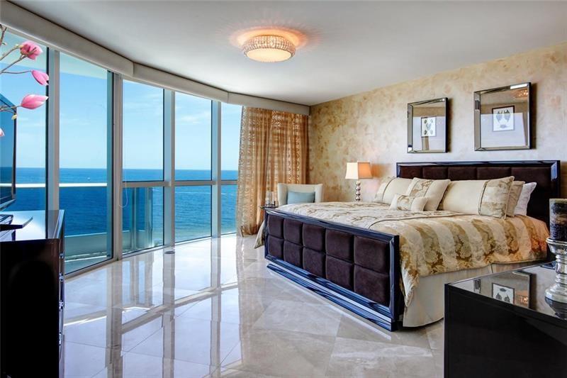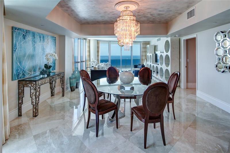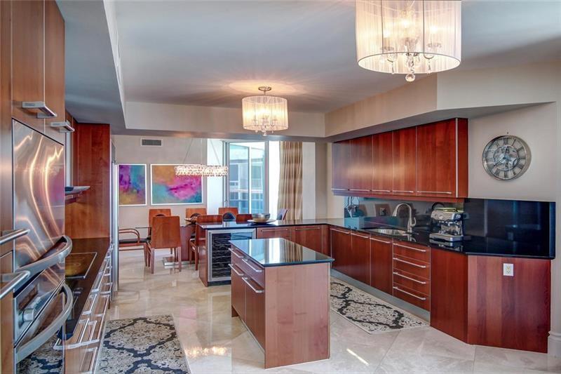 Luxurious Aquazul a boutique building, highly desirable in Lauderdale by the Sea! Situated directly on the sand with private beach access. Spacious corner residence w spectacular ocean and city views. Large bright 3 bd plus den/media, 3029 sqft, 4 balc w views east, west, north. Featuring Marble floors, elegant fixtures, custom & faux finishes. Gourmet open kitchen w Italian cabinetry, granite counters, Miele appliances, island, eat in kitchen. Elegant dining room & living room w max views and comfort. Large primary suite, ocean side balcony, 2 entrances to bath/shower, dual vanities w/ a large jacuzzi tub. Lge pantry and laundry, 2 pk spaces, plus storage unit. Amenities-beach chairs umbrella, fitness center, tennis court, security, pets welcomed. Comes furnished, turnkey move in ready.