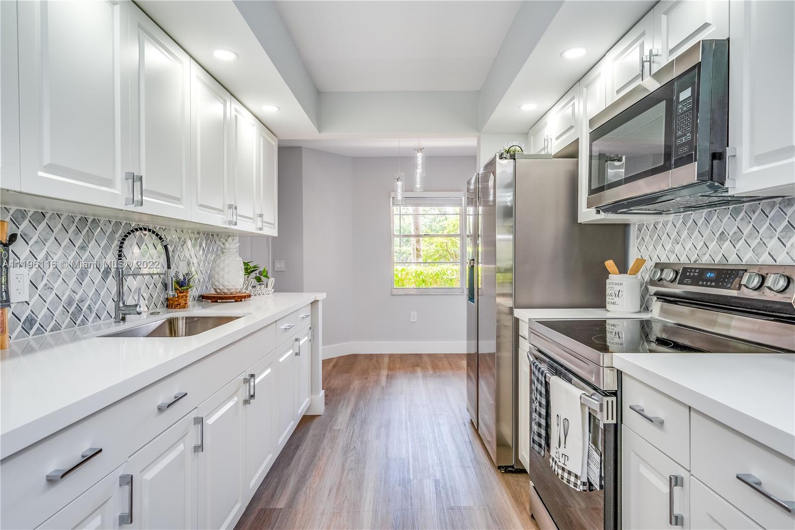 Welcome to this Gorgeous & Bright 2/2 completely remodeled 1st floor condo located in the heart of Pembroke Pines. Features a brand new kitchen w/top-of-the-line SS appliances & modern cabinets & countertop, brand new AC & tankless water heater. Large master bedroom w/walk-in closet. Both bathrooms are completely renovated. Beautiful brand new vinyl floors & LED lights throughout the unit. Freshly painted. Washer & dryer inside the unit; assigned parking & plenty of guest parking. HOA is $526.89 includes water, cable, internet, w/endless amenities a million-dollar clubhouse. This unit is located in Ivanhoe East III at Century Village, one of Pembroke Pines’ most desirable active adult communities. 55+. Located next to the shop of Pembroke Gardens and major highways. Schedule a Showing now!