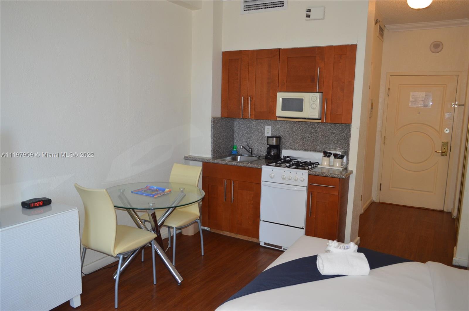 Studio apartment direct on Hollywood Beach Boardwalk. Fully renovated, great for short term rentals with no restrictions or can be owner occupy. It is fully furnished. Utilities are included in the monthly maintenance, electricity, cable, water and basic internet. Small pets allowed. Building undergoing renovation to complete 40 year certification.