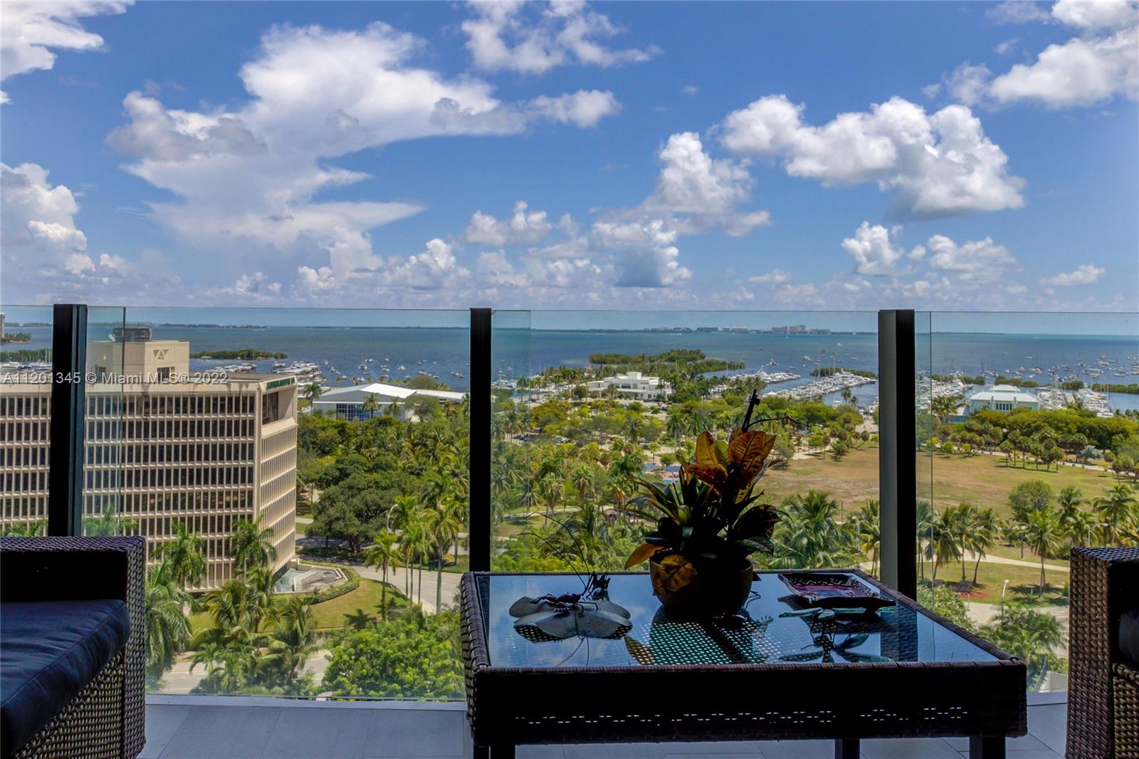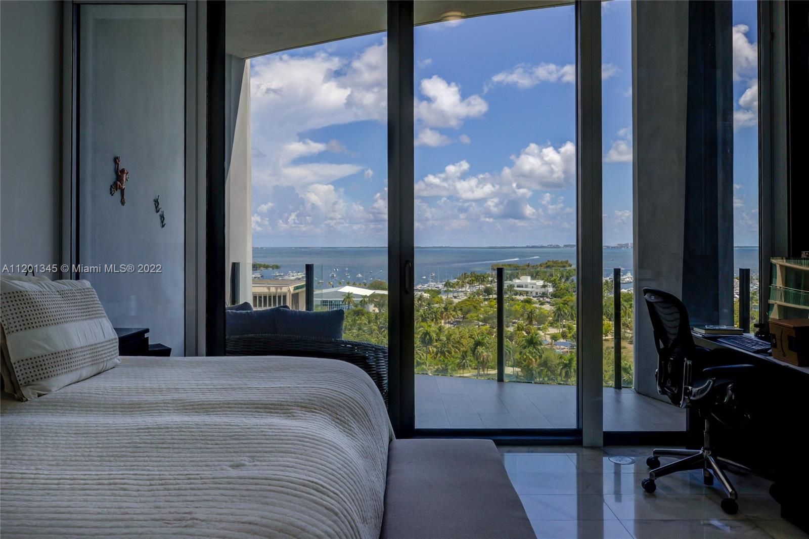 Breathtaking bay view from the 11th-floor. Luxury 2 bedroom + den converted into a 3 bedroom. A luxurious lifestyle awaits at the prestigious Two Park Grove Condo. The newest development in Coconut Grove. Floor to ceiling glass walls and 12-foot ceilings. Marble flooring throughout. 50,000 square feet of unparalleled amenities, and 4 acres of lush gardens designed by Swiss landscape architect Enzo Enea. Business center with private dining rooms. State-of-the-art fitness center including a private training room, spa, and sauna for each residential tower. Library/lounge area, private elevator, wine cellar, wine lockers, and much more.