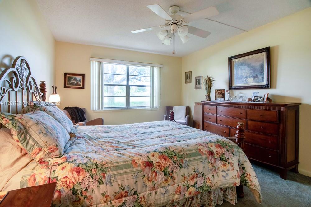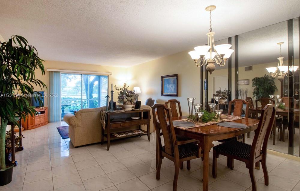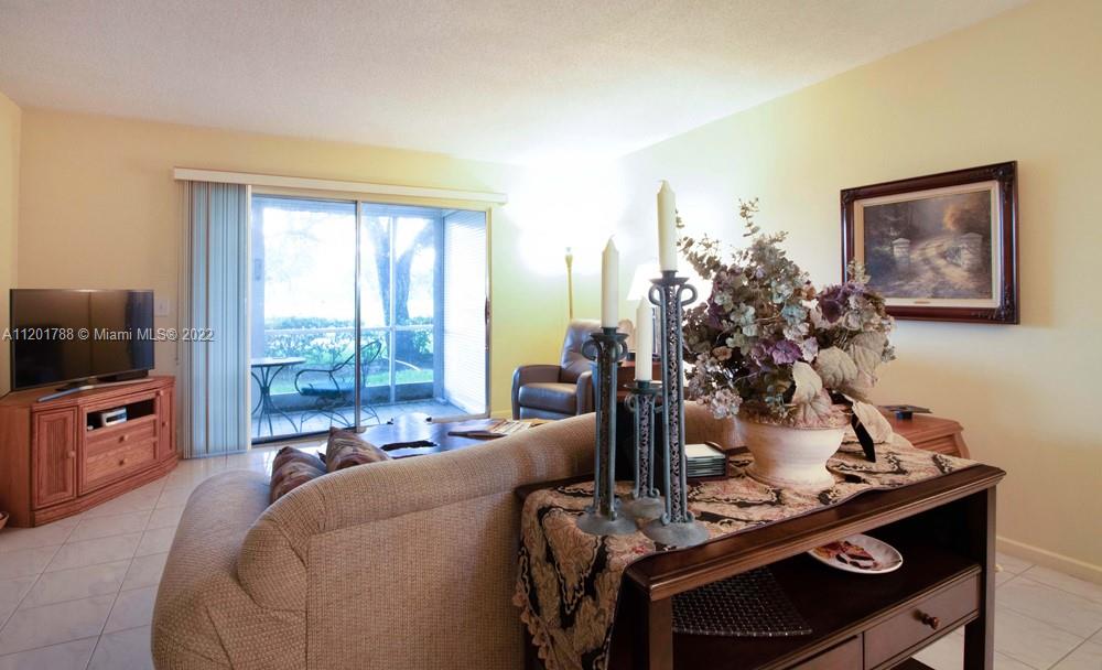 55+ community. Beautiful 2 bedroom 2 bathroom with ceramic floors on living room, dinning room, kitchen and the guest bedroom. Carpet on the master bedroom. First floor level with a spectacular view of the golf course. Amazing Clubhouse, theater and poll area. A MUST SEE.