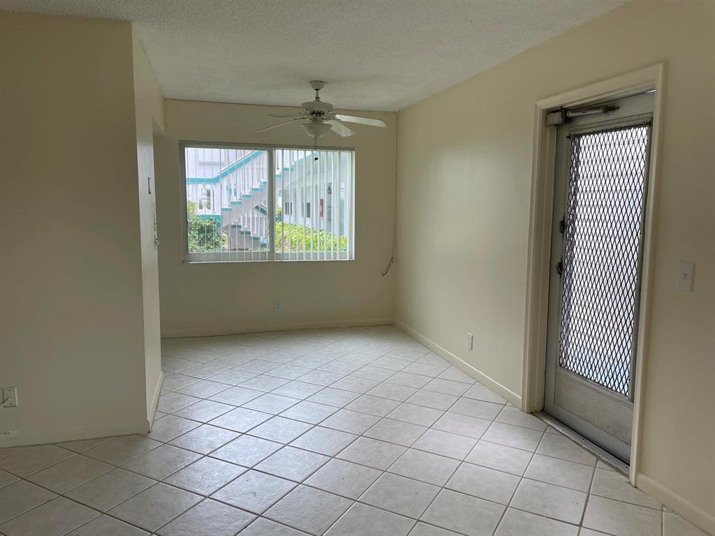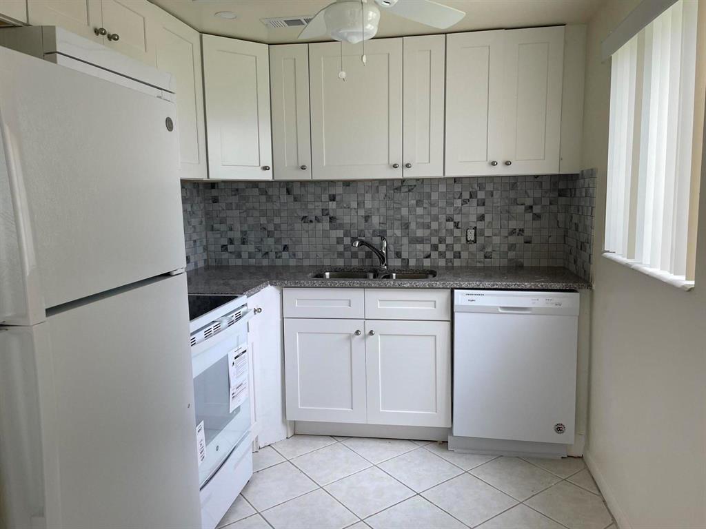 Sunshine abounds in this 1st floor corner unit! This 2 bedroom unit overlooks a lovely patio with lush foliage. This remodeled unit boasts a brand new kitchen with new appliances, cabinets and granite countertops. The full bath was just remodeled with a walk in shower. Sparkling tile floors complete this outstanding property. Central Air Conditioning, Cats are allowed. You will enjoy the South Florida lifestyle with amenities such as a fully equipped fitness center, club house with over 1000 seat theater, free transportation, close proximity to PBI airport, shopping, beaches and many restaurants
