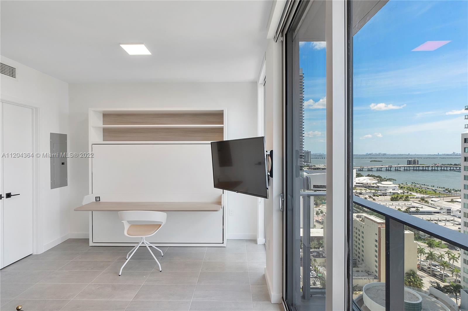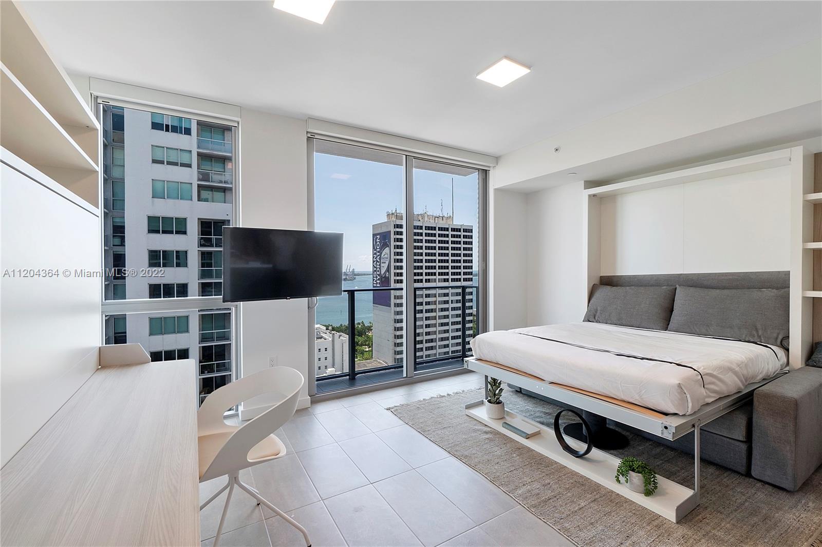 Earn income from day 1 of ownership!!! Located in the newly built YOTELPAD Miami with MAJESTIC views of Biscayne Bay - This brand new FURNISHED studio stands out from the pack. It features a spacious European kitchen and top of the line appliances, washer and dryer in the unit, 2 murphy type beds on opposite walls (sleeps 4), Sofa and work desk convert to beds, modern and sleek design, on a high floor with breathtaking views of Biscayne bay. Amenities include: Pool and poolside bar, gym, and a restaurant with many spaces to relax and socialize. Currently, part of the hotel's rental program- fixed quarterly payment. See owner's brochure attached for more information about the hotel rental programs.