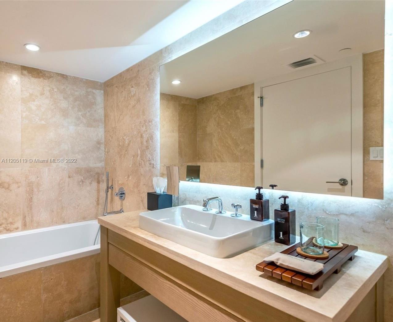Luxury 1BR/ 1.5BA condo in the beautiful 1 Hotel & Homes. Custom designed, this oceanfront unit features nearly 893 sq. ft. of living space with ocean views. Kitchen features stainless appliances by Sub-Zero and Bosch. Beautiful finishes and flooring throughout. A true five-star living experience, 1 Hotel & Homes offers residents 24-hour concierge service, free Tesla car service, 4 pools, fitness center and spa and more. The short-term rental policy offers lucrative income potential. All of this and more just steps from South Beach’s hottest restaurants, nightlife and shopping. Best price 1 bedroom facing the ocean.