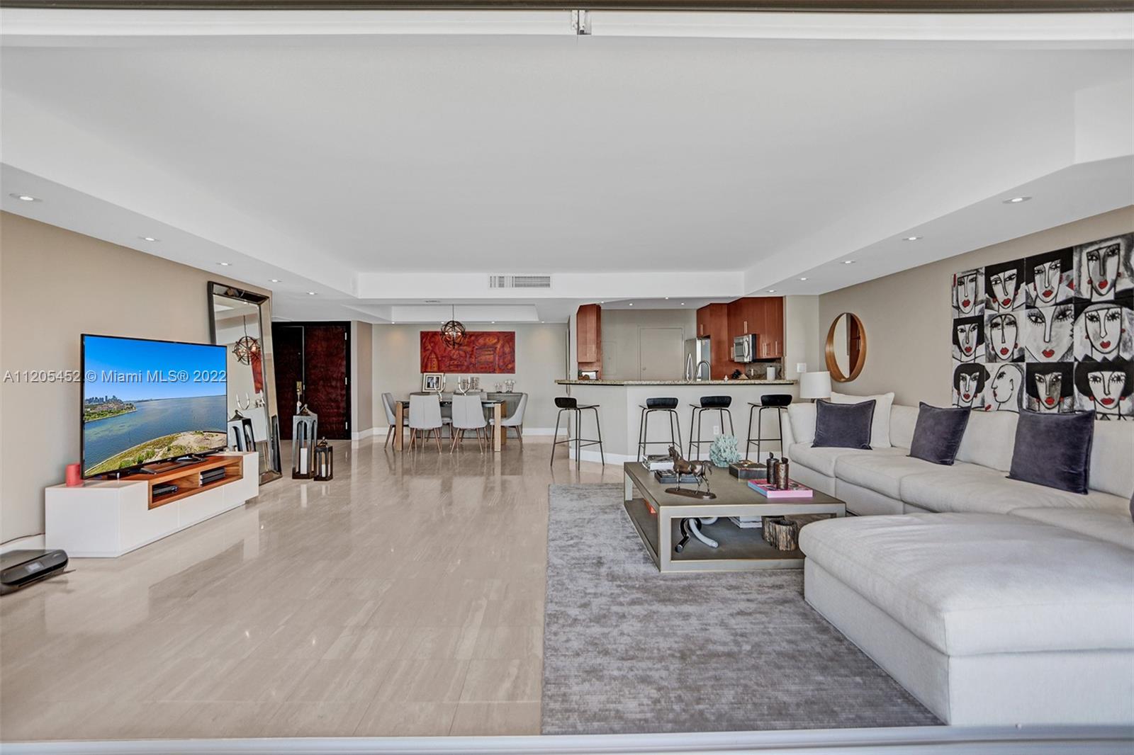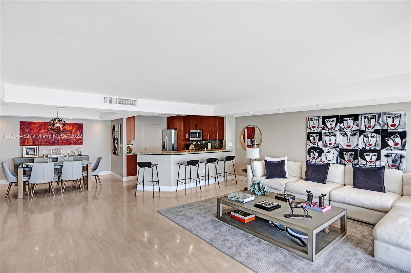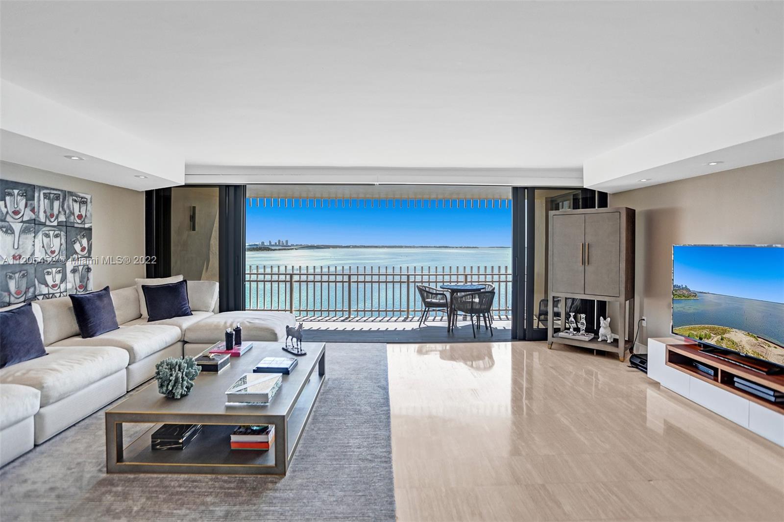 Enjoy direct ocean vistas from this exquisitely renovated 2BD/2BA. Largest two-bedroom floor plan with 1882 sq.ft. offers an open concept & wide impact doors that allow the interior to merge seamlessly with the spacious balcony. Additional features include marble floors, tile in bedrooms, recessed lighting, customized built-in wardrobe & bonus room. Grove Isle is a centrally located, 20-acre private island in Coconut Grove with marina, 24-hour security, valet, on-site management, dog park & so much more. Minutes to some of the best restaurants & shops. Please refer to Brokers Remarks. Dining Room chandelier excluded from the sale.