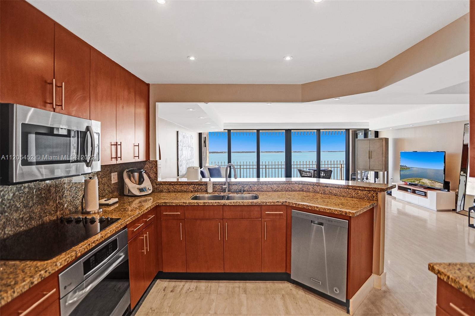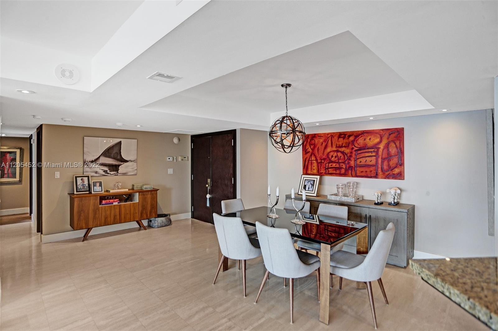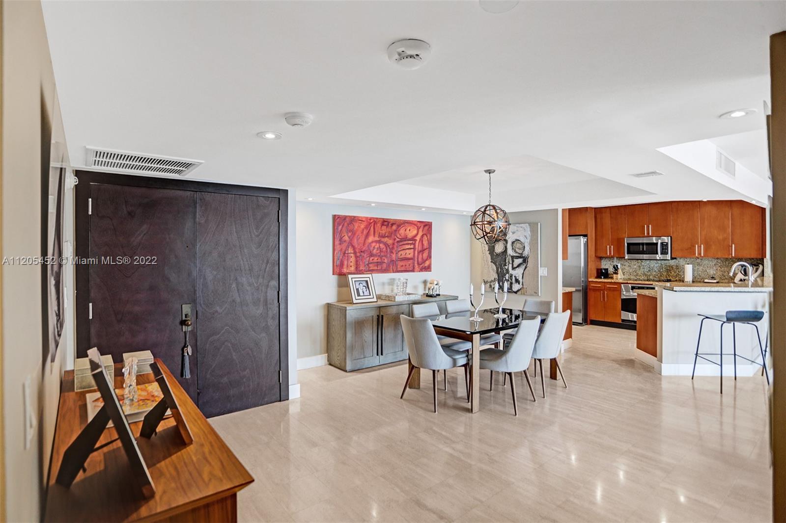 Enjoy direct ocean vistas from this exquisitely renovated 2BD/2BA. Largest two-bedroom floor plan with 1882 sq.ft. offers an open concept & wide impact doors that allow the interior to merge seamlessly with the spacious balcony. Additional features include marble floors, tile in bedrooms, recessed lighting, customized built-in wardrobe & bonus room. Grove Isle is a centrally located, 20-acre private island in Coconut Grove with marina, 24-hour security, valet, on-site management, dog park & so much more. Minutes to some of the best restaurants & shops. Please refer to Brokers Remarks. Dining Room chandelier excluded from the sale.