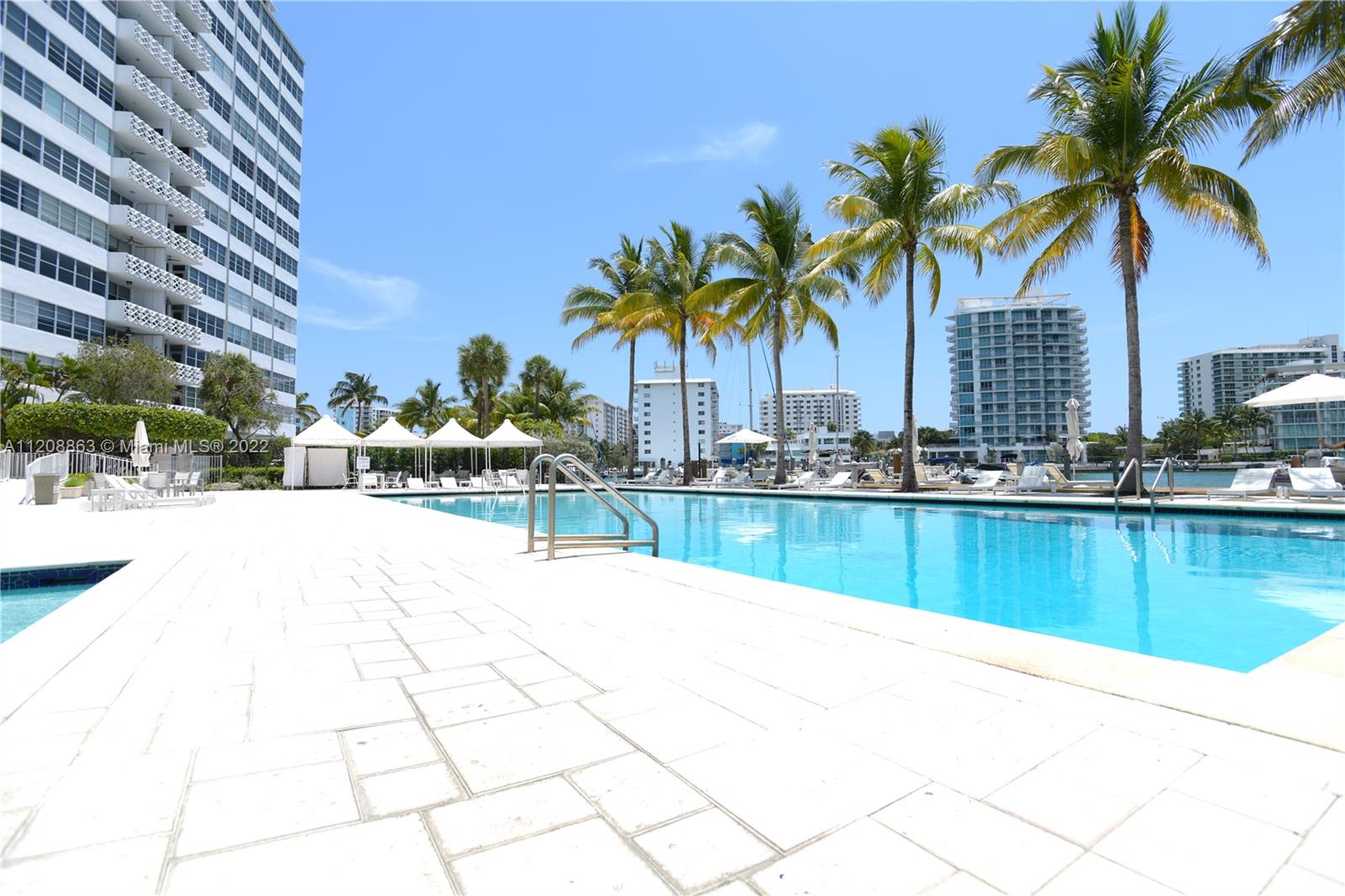 Revel in this highly desirable northeast corner apartment with striking bay and city views located on Belle Isle, the easternmost island of the coveted Venetian Islands. This private Belle Plaza unit affords 2 bedrooms, 2 bathrooms, bamboo floors, and gourmet kitchen with stainless steel appliances. Upgrades include high-impact, UV and fade protection windows, terrazzo walls and penny tile floors in both bathrooms. Built in 1962, Belle Plaza has been beautifully restored maintaining its Mid-century modern design while offering modern conveniences such as full-service amenities that include pool, hot tub, boat dock, BBQ areas, tennis court, gym, valet, and 24-hour front desk attendant. Just steps away from The Standard Spa, Sunset Harbour, and Lincoln Road.