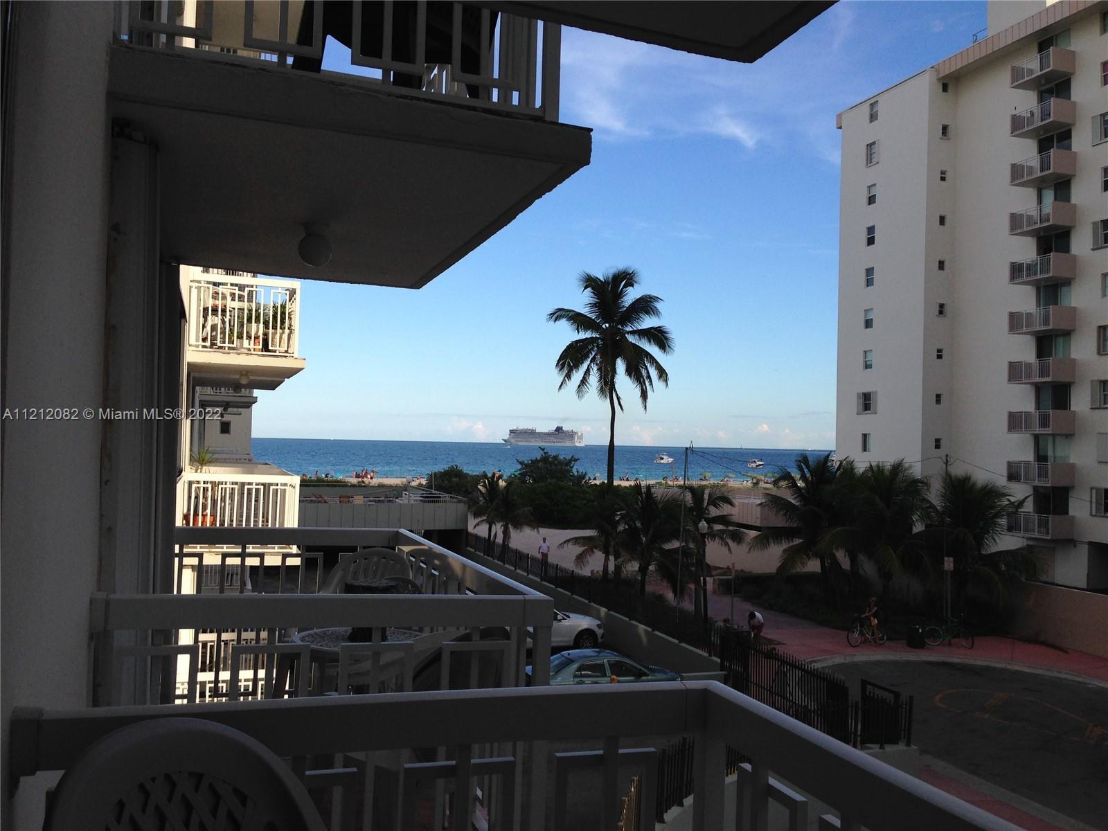 South of Fifth location on the Beach side. Ocean Views on a Large Corner Balcony. 1 Gated Assigned Parking Space. Maintenance Fee includes water and basic cable. Building has a heated pool and access to the Beach. Community Room with Wi-Fi. There are men's and women's saunas. Great income potential as you can Lease after the first year of ownership. Close to restaurants, shops, and the best of South Beach.