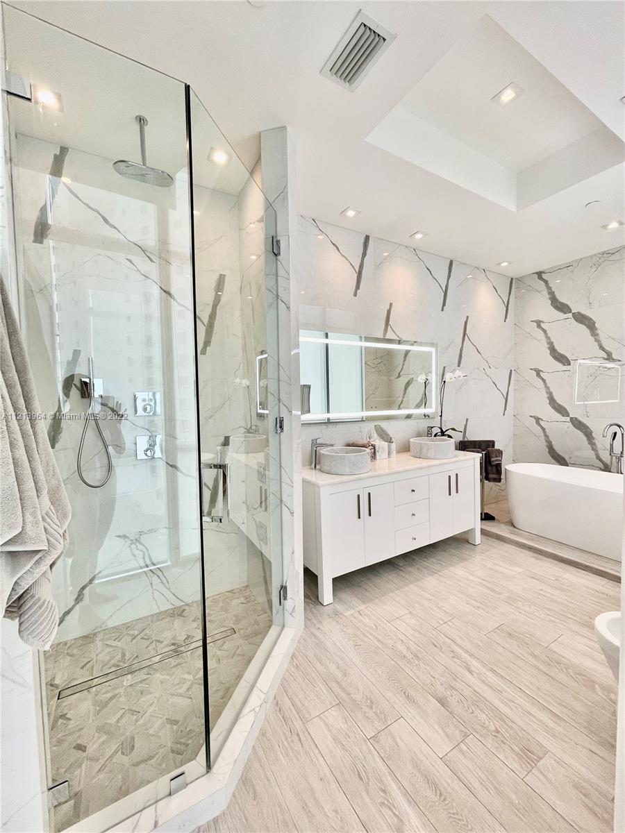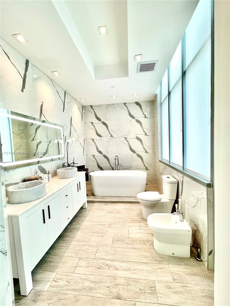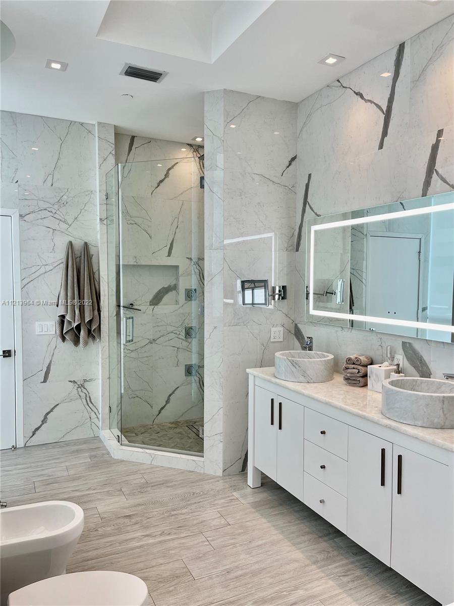 BEST LOCATION!!! Amazing professionally renovated 2/2 unit. Breathtaking unobstructed ocean view. High ceilings. Italian porcelain throughout. Master Suite with great ocean view, walk-in closets, beautifully top-of-the-line bathroom, you will feel you have entered a spa. Den converted to bedroom with custom-built queen size Murphy bed with integrated sofa. Italian open kitchen w high-end appliances Sub-zero, Miele, wine cooler. Smart-wired throughout, fast internet. Can be sold turnkey, furniture negotiable. Storage and assigned parking. Beyond the prestige luxurious lifestyle, Jade offers security and privacy biometric entrance, 24h free valet parking, concierge, infinity pool, spa, gym, community room, bike storage and racquetball court. Spectacular city and bay views! Must see.