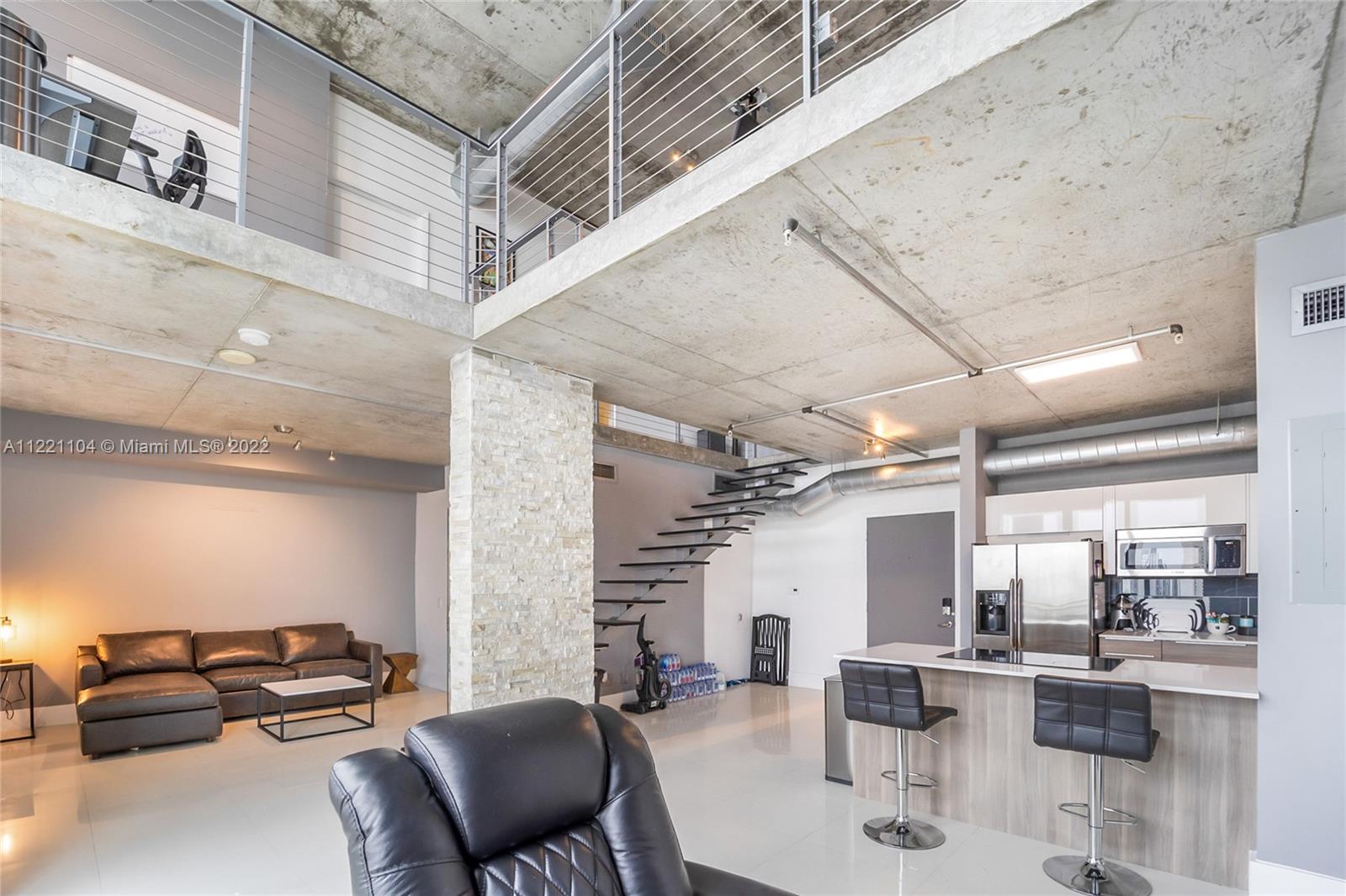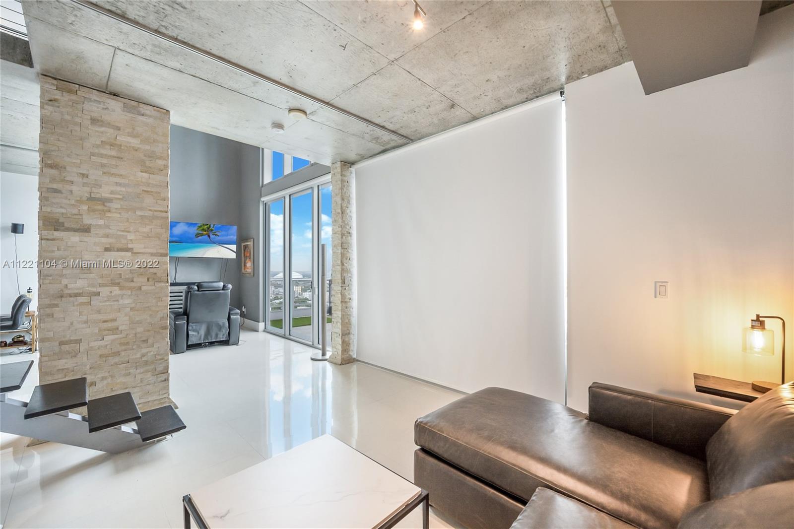 Gorgeous open Floor plan 2 story corner penthouse suite with breathtaking unobstructed city and river views. Open floor plan/Master bedroom in the second floor plus 1 bedroom in the first floor. Open kitchen features custom Italian cabinetry, granite countertops, and stainless steel appliances. 20' floor to ceiling windows, ceramic tile floors throughout the lower level, steel floating staircase, exposed concrete, electric shades and much more... Neo Vertika offers 24/7 valet and security, an infinity lap pool, volcanic rock sauna, meditation pond, gym overlooking the Miami River, aromatherapy steam room, cigar parlor, and a racquetball court. Hurry, very desirable line, will not last long!