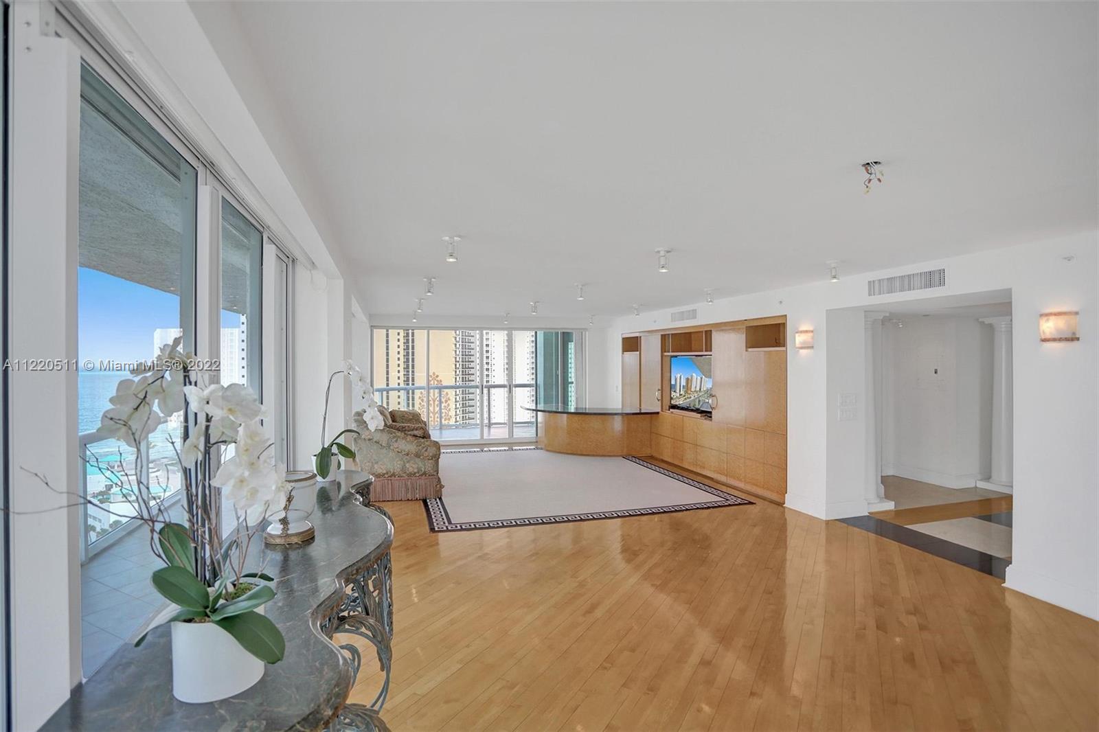 This special corner property is in the sought out area of Sunny Isles Beach. It has breathtaking views of the Ocean, Intracoastal + city. This residence boasts 2,340 indoor SF and a large wraparound terrace. 3 full bedrooms and 3 bathrooms. Some of the finest finishes include, marble floors throughout, custom closets and custom lighting, huge wrap around terrace. Enjoy the unsurpassed lifestyle of Oceania with clubhouse, cafe, pools, beach service, multiple restaurants inside and out, gym, salon. A boater's dream on private island with a marina and so much more.