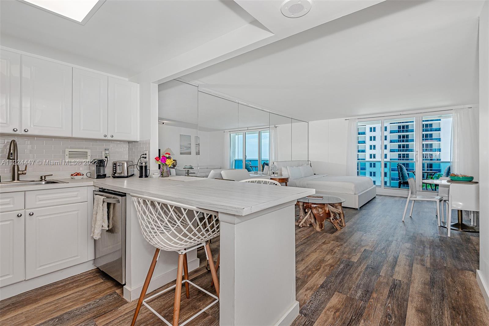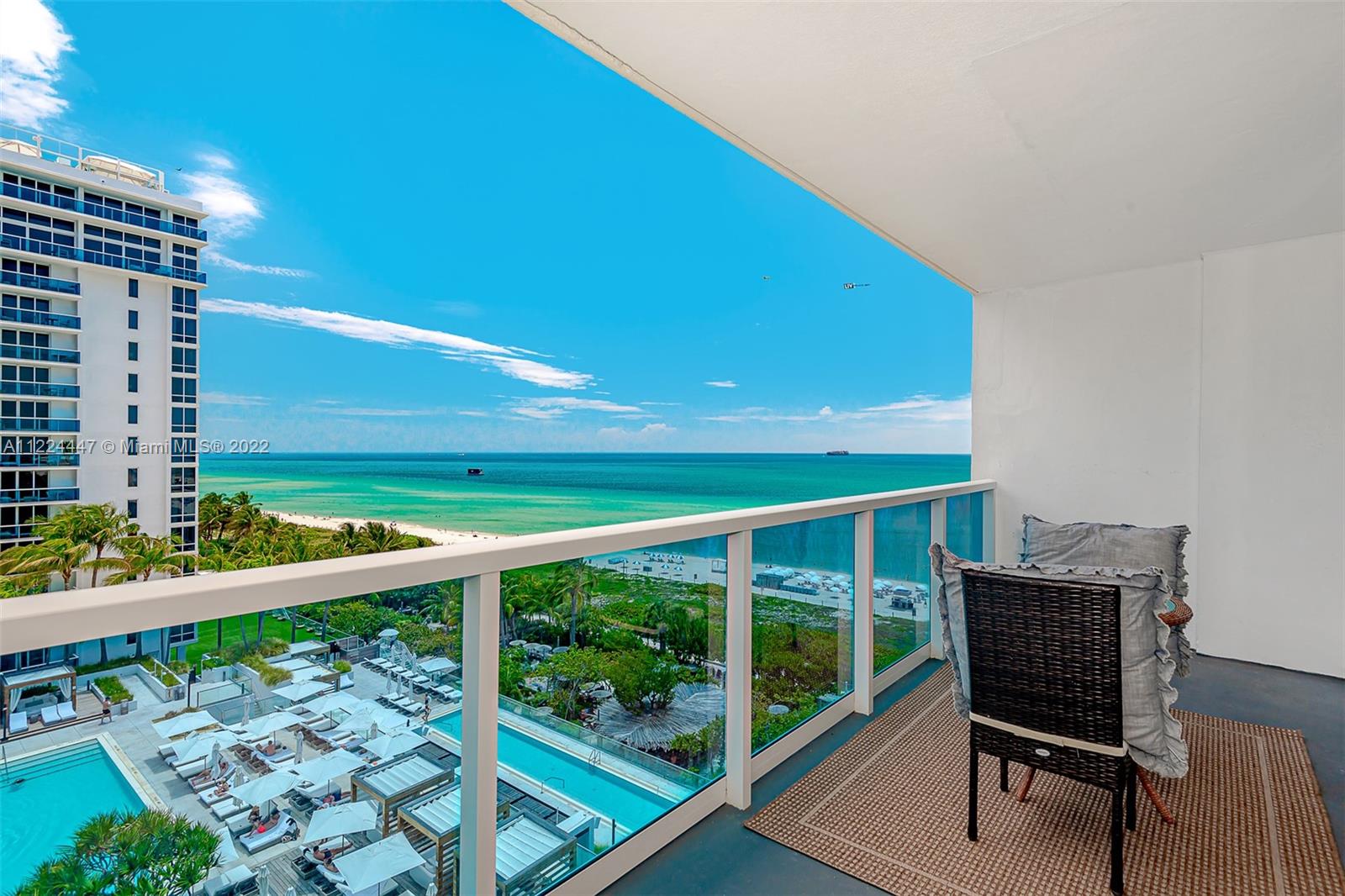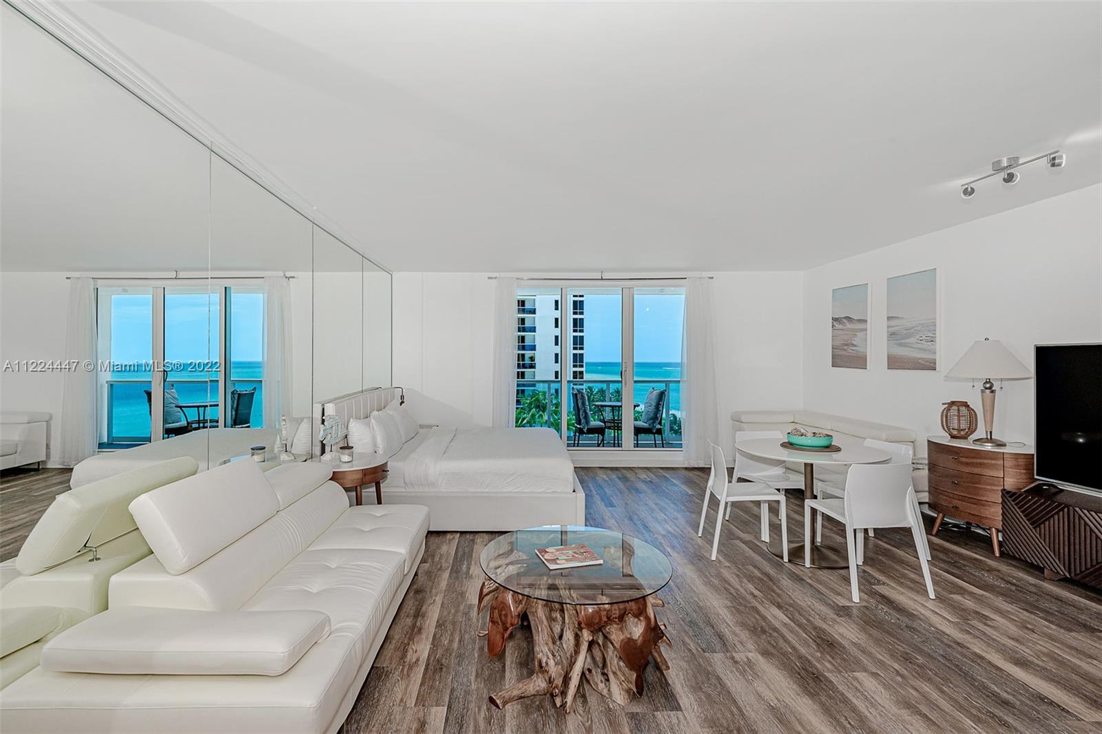 Beautifully decorated Studio with amazing centered view of the 1 hotel pools and ocean from balcony. 600 SQft +Plus+ 123 SQFT of Oceanfront Balcony. Enjoy the best lifestyle south beach offers. Modern furniture and appliances, warm clean and modern design, shared common Luxury amenities from the 1 hotel south beach, central location.