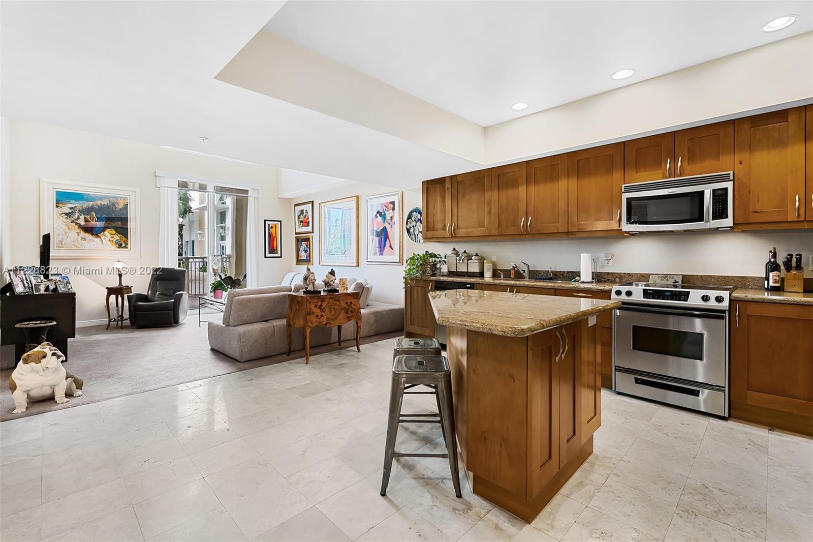 Rare opportunity! Incredible 2-story TOWNHOUSE/condo with large gated patio by the pool. Spacious 2/2.5 w/ 1 bedroom on ground floor and master bedroom upstairs with open balcony overlooking pool area. Dramatic 20 ft. vaulted ceilings throughout open living area. Incredible natural light from floor to ceiling impact windows. Open kitchen with granite countertops, SS appliances and wood cabinetry. Washer/Dryer inside. Amenities include 24 hr. security, tennis, spa, fitness center, jogging path, heated pool, billiard room . Convenient location walking distance to Starbucks, Supermarkets & Restaurants. Assoc fee includes cable/internet. Investors can rent right away. TENANT OCCUPIED UNTIL JANUARY 21, 2023 PAYING $2,775. Lease must be assumed.