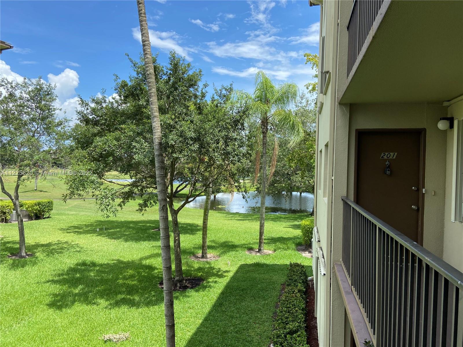 Step inside this light, bright, large corner unit w/views of the peaceful lake & golf course. On a hot summer day enjoy the nice breeze from the kitchen window. 1166SF of living space, unit has 2 beds & 2 full baths, freshly painted & cleaned. Oversized balcony w/sweeping views of golf course & lake. Storage closet adjacent to the balcony along with a small storage cage in the on-floor laundry room. This is one of the buildings that has an elevator along with stairs conveniently located just outside your front door. Front row parking spot & guest parking. Century Village is a 55+ community that has resort-style amenities including pool, tennis courts, club house &more. Unit being sold as-is. Original owner with no updates, ready for a new owner to create their happily-ever-after.