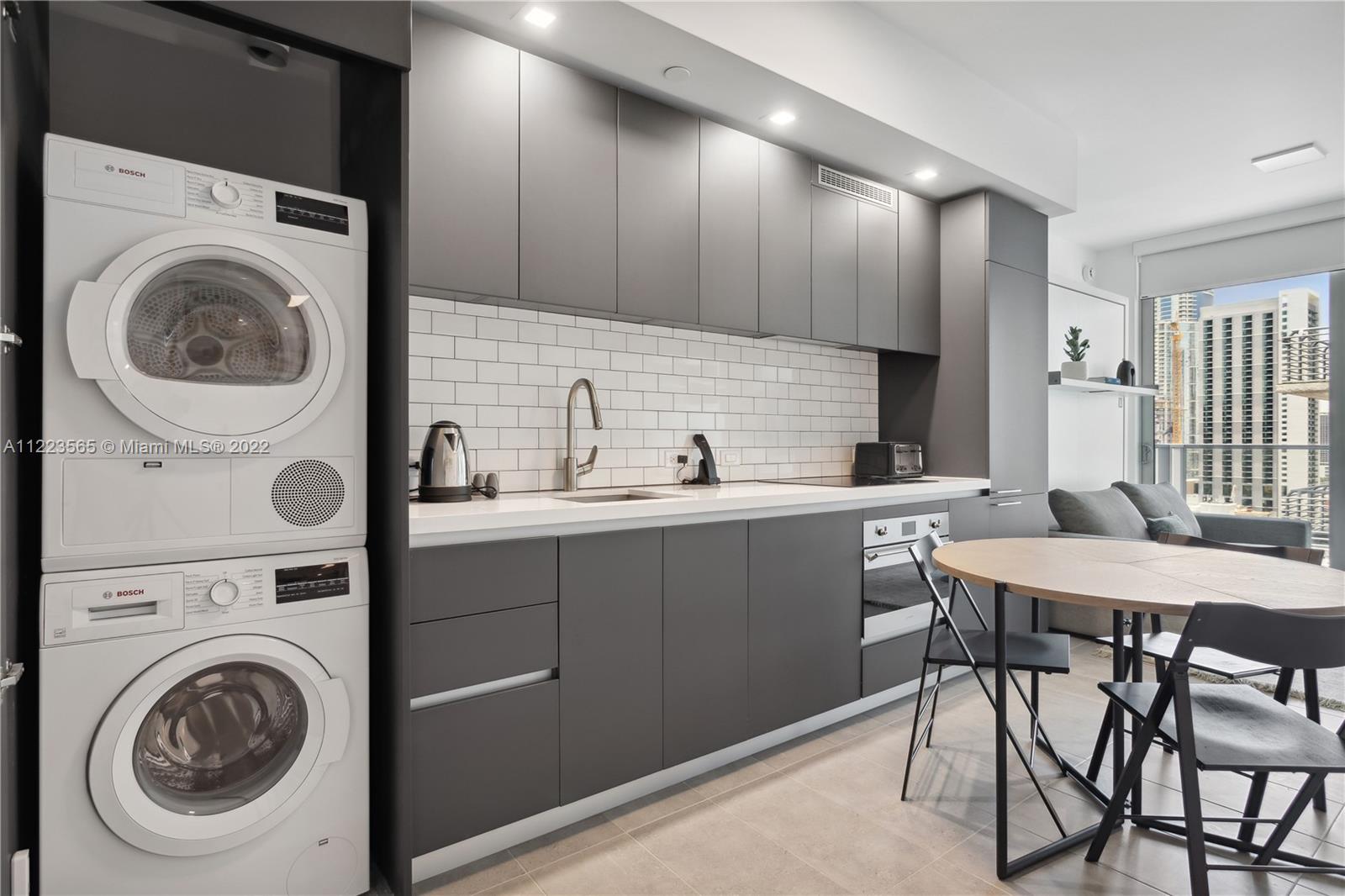 Fully furnished turnkey studio set up as a one bedroom in the Hotel Rental Program Agreement (attached), great opportunity to use and rent when you're not using it. YOTEL MIAMI, the first building specifically designed for short term rentals, AirBnB approved. Washer/Dryer in unit. Sleeps 4. CASH ONLY. Amenities include pool, lounge area, gym, pet spa, social room, pool table, and more. Yotelpad Miami offers a top floor owners' lounge, gym, pool with jacuzzi, restaurant, coffee bar, separate resident's lobby with 24/7 front desk staff, and valet parking. Strategically located a minute from Brightline Station, FTX Arena, and more. Included in HOA: Internet, water, waste management, internet, 1 TV box, building maintenance