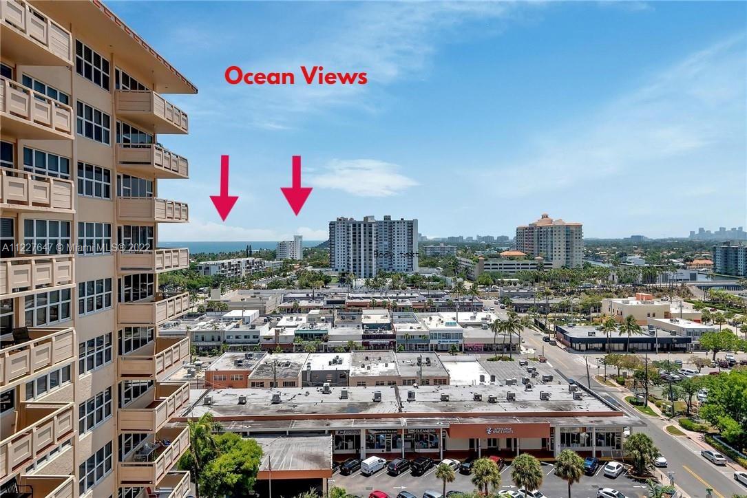 Stunning views of the Ocean, Intracoastal, City and Community Pool from your balcony! One of the most sought after buildings at Coral Ridge Towers, just steps from the beach! Spacious living area with Livingroom/Dining room combination, Eat-in Kitchen, Bedroom with 2 closets, plenty of storage with additional spacious hall closet and linen closet, marble in bathroom. Impact windows and balcony door. Separate Storage area for residents, and laundry is just a few steps down the hall. Beautiful waterfalls in the lobby, ammentities include hobby/recreation room, library, gym, community pool, and loads of activities and holiday parties for socializing! This community states HOPA 55+
