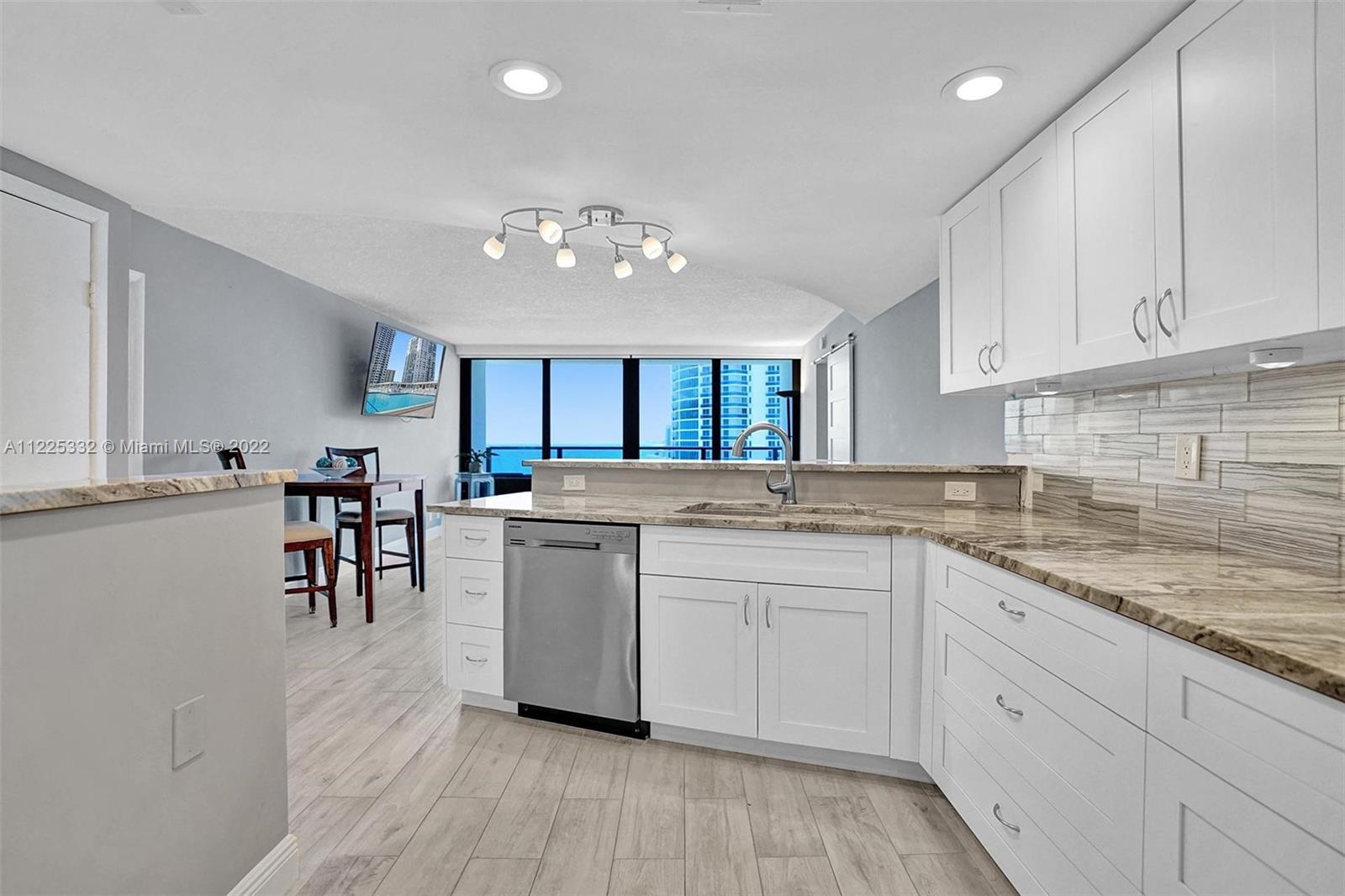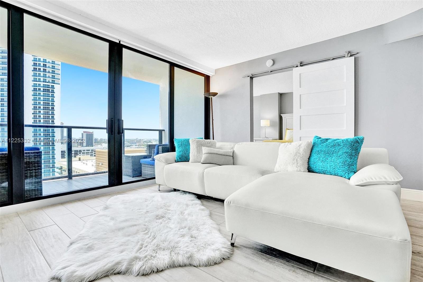 The views from the 24th floor from 1,260 SqFt condo will take your breath away! From turquoise colors of the ocean to an incredible intracoastal & city skyline views. Rarely available & completely remodeled residence with a cozy balcony-terrace will be your one-of-a-kind Oasis on the Beach! Open extended modern kitchen with a granite countertops, tile floors throughout. Brand new hurricane proof windows and glass balcony. Building was recently redone with new hallways & lobby decorated by Steven G Design. Amenities: includes 2 infinity pools, beach services, GYM. Restaurant on site. Perfectly located walking distance to Hollywood Boardwalk, near restaurants and shops, few minutes drive to FLL.