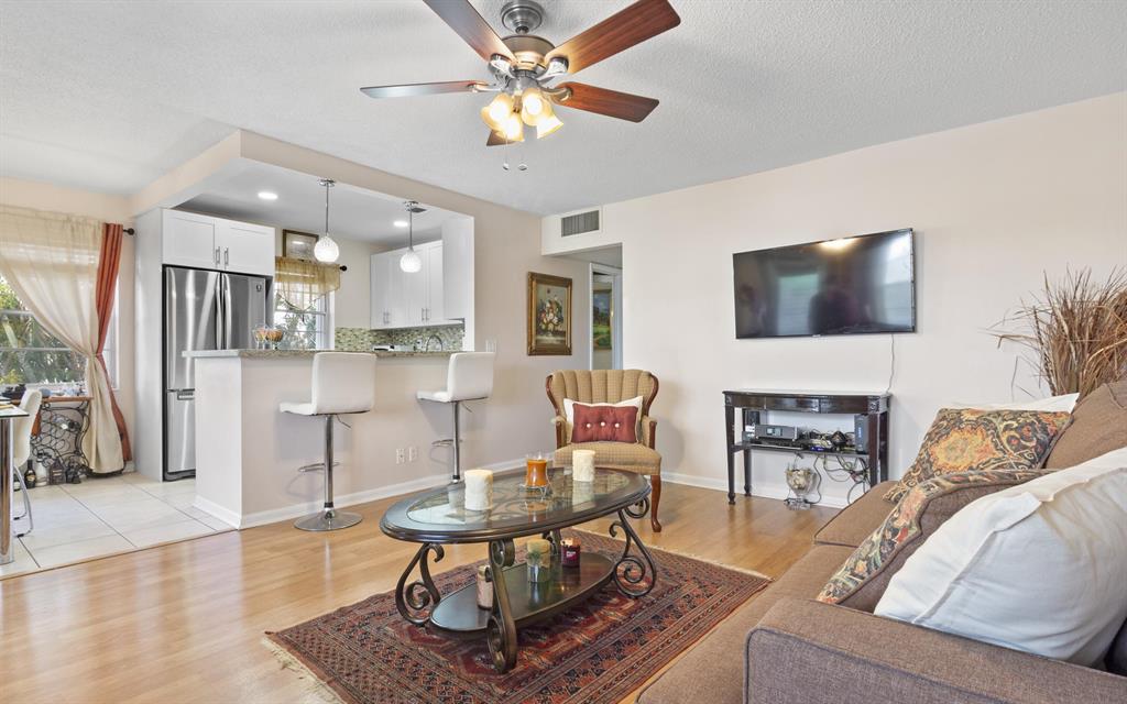 Amazing opportunity to buy this REMODELATED CONDO ready to move-in . Located in a desirable area. Century Village West Palm Beach, a 55+ resort style active community. This unit is an interior corner unit with a wide terrace and green nature view. Some of the features are Laminated flooring, Central A/C, As well as an extraordinary open kitchen with solid wood, white shaker cabinets which produces a perfect contrasting effect all cabinets have soft-close drawers and cabinet doors. You will enjoy the South Florida lifestyle with amenities such as a fully equipped fitness center, club house with over 1000 seat theater, three pools, free transportation, close proximity to PBI airport, shopping centers, beaches and many restaurants with different type of gastronomic food from many places over