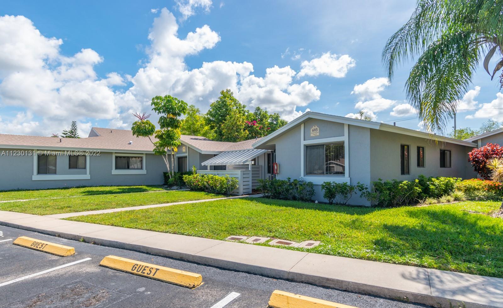 YOUR FUTURE HOME AWAITS! Perfectly located 3bed/2bath villa with soaring ceilings & split floorplan. Freshly painted kitchen & living areas primed, ready for your personal touch. BRAND-NEW stainless-steel fridge, NEW faucet, NEW disposal, NEW washer/dryer! Pass-through area in kitchen leads to dining room, great for entertaining. Spacious master with 2 closets including a walk-in, NEW blinds, sliding door access to patio. Renovated master bath with walk-in shower & glass doors. Second bath with tub. Fans in all rooms, living & kitchen. Roll-down shutters in screened-in back patio overlooking peaceful garden area. 2 ASSIGNED PARKING SPOTS unique to this unit! NEW ROOF 2021. HOA covers building insurance, water, roof & ext/maint. Unlimited access to Bonaventure Town Center Club ($285yr).