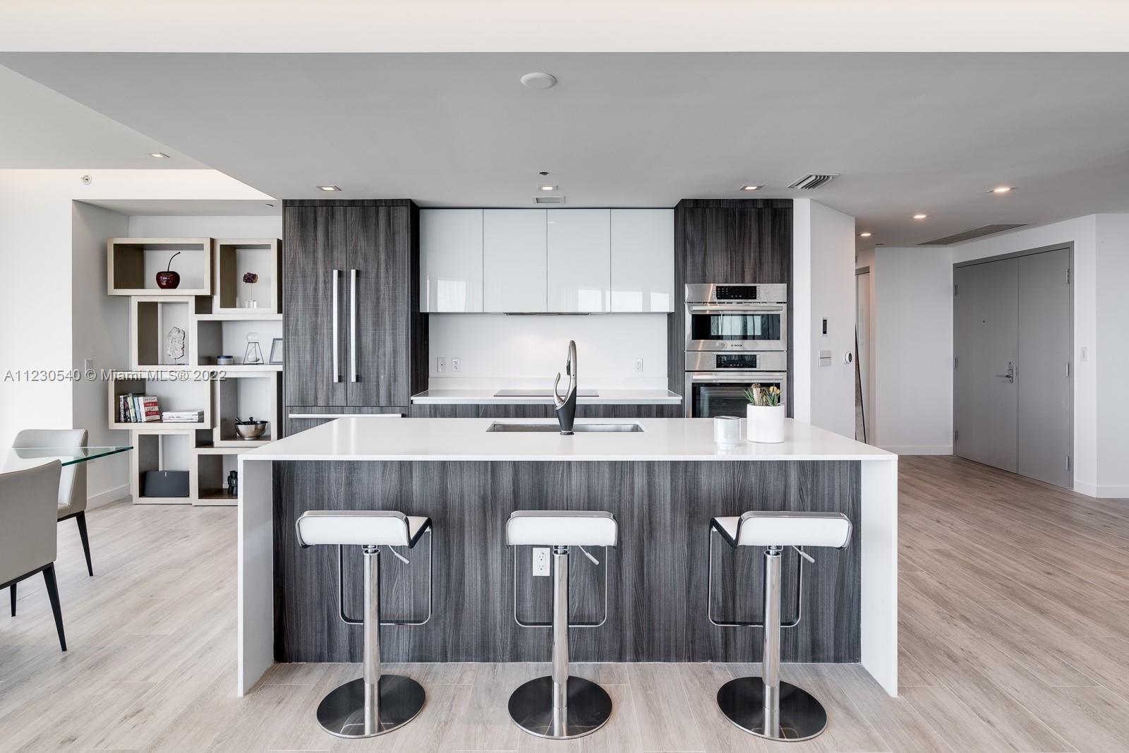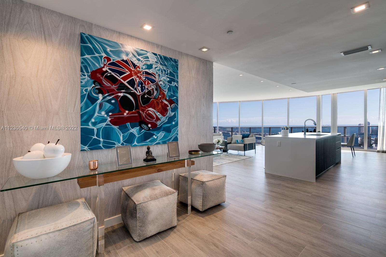 Immaculate southeast corner unit with direct bay, ocean and city views. Modern design, open plan living, high ceilings (9 ft), European-style kitchen, and modern Italian cabinetry. Private elevator and foyer. Floor-to-ceiling glass throughout w/ expansive wraparound terraces. Hot Edgewater location, walking distance to major supermarket, restaurants, local parks, recreation and short drive to the beach and downtown Miami. Building amenities include large pool deck overlooking Biscayne Bay, street level retail, 24-hour concierge, on-site security, controlled entry garage w/ assigned parking, state of the art fitness center, yoga studio, and BBQ areas with summer kitchen. Social areas include kids playroom, theater, teen lounge & conference room. Fantastic location and move in ready !