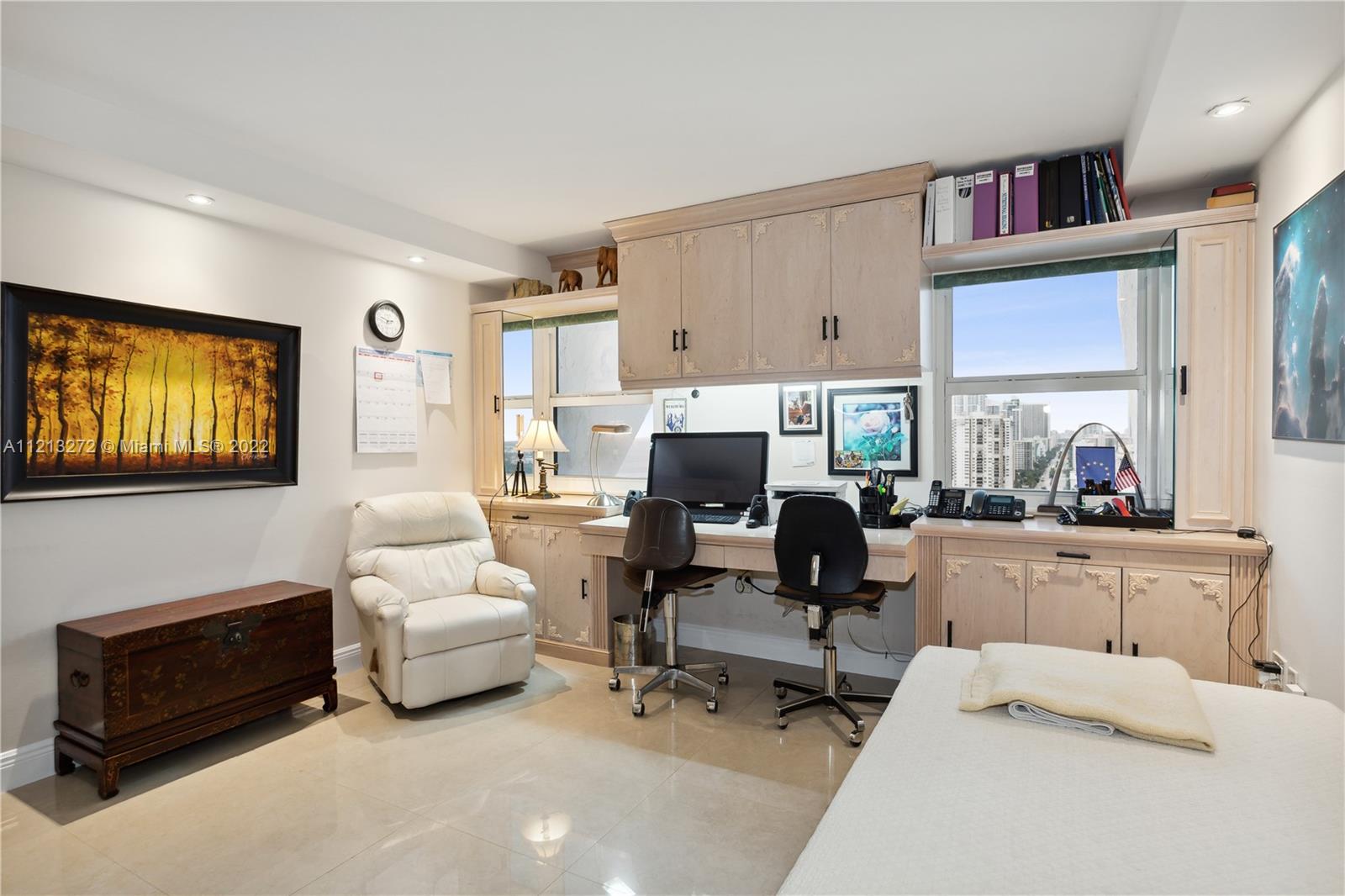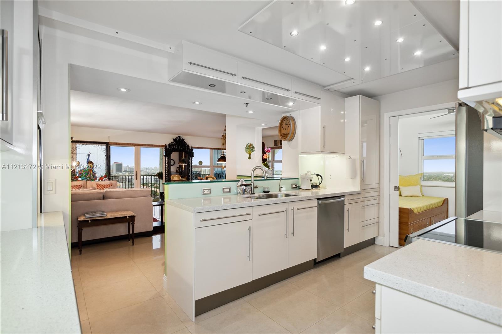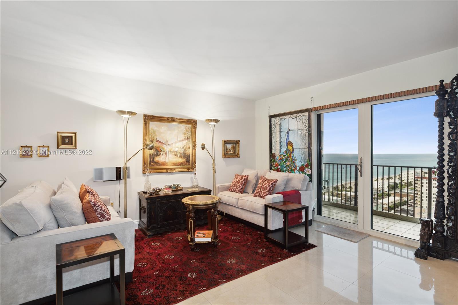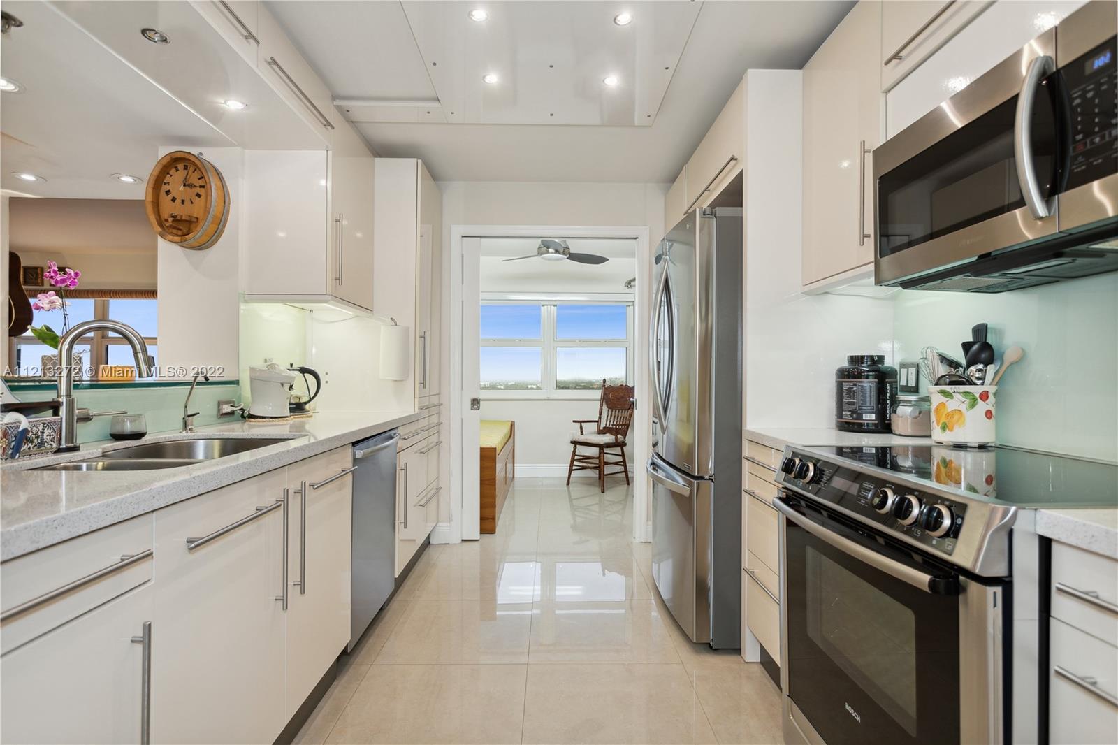 Breathtaking sunsets and unobstructed ocean and intracoastal views from the totally renovated and move in ready Penthouse. Ocean paradise on Hollywood beach from this spacious 2 bed and 2 bath unit that features a huge walk-in California closet in master bedroom and valuable build-in-wood furniture in all rooms.Tiled throughout. New Carrier AC (11/21) New Samsung Washer/dryer (1/22) inside unit with extra shelves and space for storage. New LG refrigerator (6/20) Reverse Osmosis filtration system in the kitchen and refrigerator. Delta kitchen touch faucet. 2 garage parking spaces and one storage locker. Amenities include 2 heated salt water swimming pools, tennis courts, library, fitness/game rooms, putting green. A private full service restaurant. Direct access to the ocean. 24/7 security