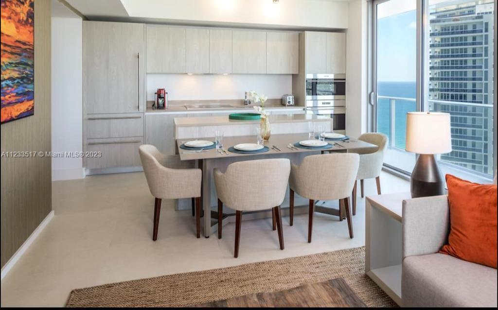 Spectacular corner Unit with oversize Balcony Facing Ocean and Intracoastal views. Modern Furnished, kind size Bed in Master Bedroom, 2 Queen Beds in 2nd Bedroom, Sofa bed in living Room, Beach service, pool, restaurants, bars, cafe and more.