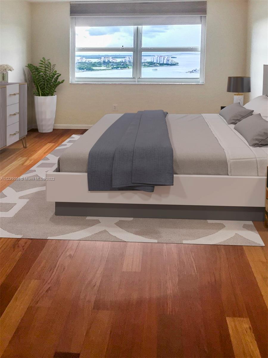 Rarely available '02' line corner unit with stunning west, south, and east water views from two balconies. Brazilian Cherry Wood floors refurbished in 2017. Original kitchen w/granite countertops and white cabinetry. Original baths w/white-tiled floors. Stainless Steel appliances. Refrigerator 4 years old. Air Conditioner 4 years old. Water heater 3 years old. Popcorn ceiling removed. Blackout roll-down shades in both bedrooms. California shelving in all closets, including laundry area. Full size washer & dryer. 1 assigned parking space. Free valet for 2nd car. Pool, gym, convenience store on site. Tenants in place until 8/28/22.