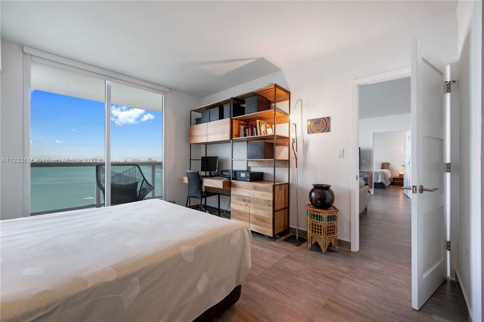 Most desirable and rarely available, 2 bed 2 bath with amazing unobstructed views of Biscayne Bay from every room. Located on the 22nd floor, 07 line is the larger of the 2 bed 2 bath split plan. Remodeled in 2019, the unit features ceramic floor throughout, impact windows, large private balcony 252 Sf. one storage and one assigned parking space. Full amenities building: valet, doorman, pool fitness center, resort-style pool deck and much more. Walk to Margaret Pace Park, only short drive to Wynwood Midtown restaurants Design district, shops, and Miami nightlife.