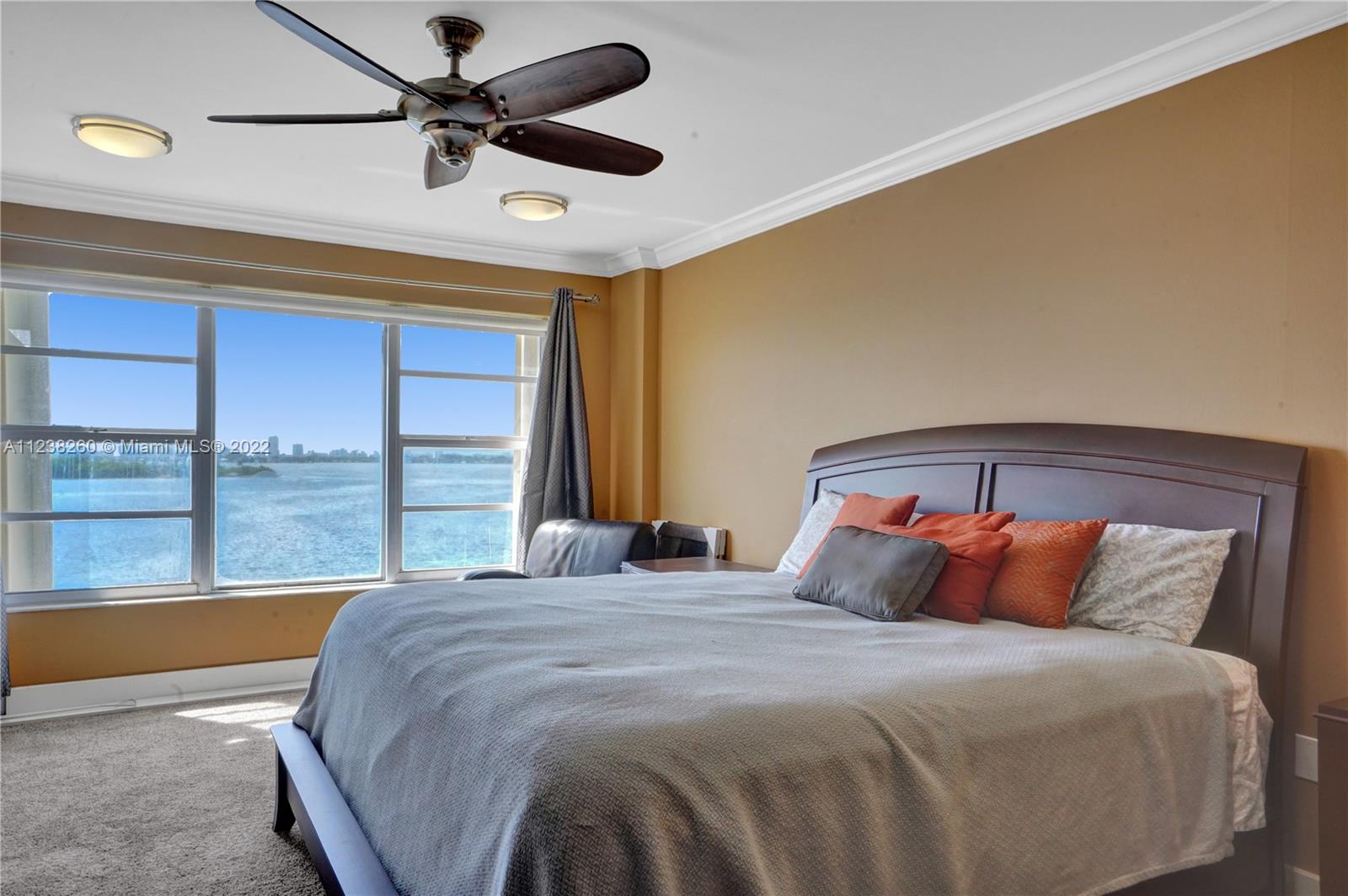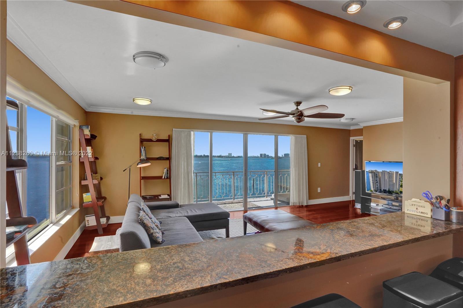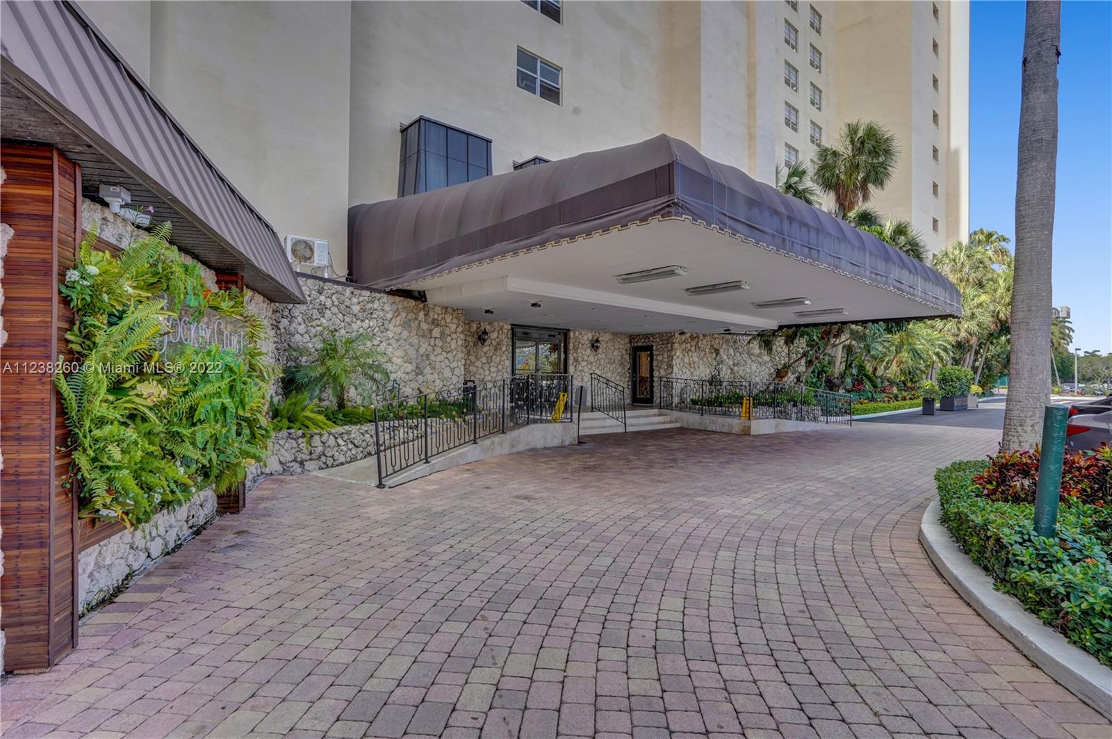 You'll be mesmerized by the incredible panoramic water views over Biscayne Bay from this tastefully remodeled 2 bedroom condo in the gated Jockey Club community. This unit is located in the ideal stack line on the point so close to the shimmering bay waters you feel like you can touch them. Open floor plan concept with an upgraded kitchen boasting solid wood cabinets and granite counter tops. Both bathrooms have been elegantly updated as well. Wood floors in living areas. Smooth, slick ceilings, custom light fixtures and crown moldings really add a designer's touch. Large walk-in closet. Accordion hurricane shutters. Relax at the pool deck right along the bay. Centrally located - close to shopping, restaurants and more. Must own for 24 months before renting.