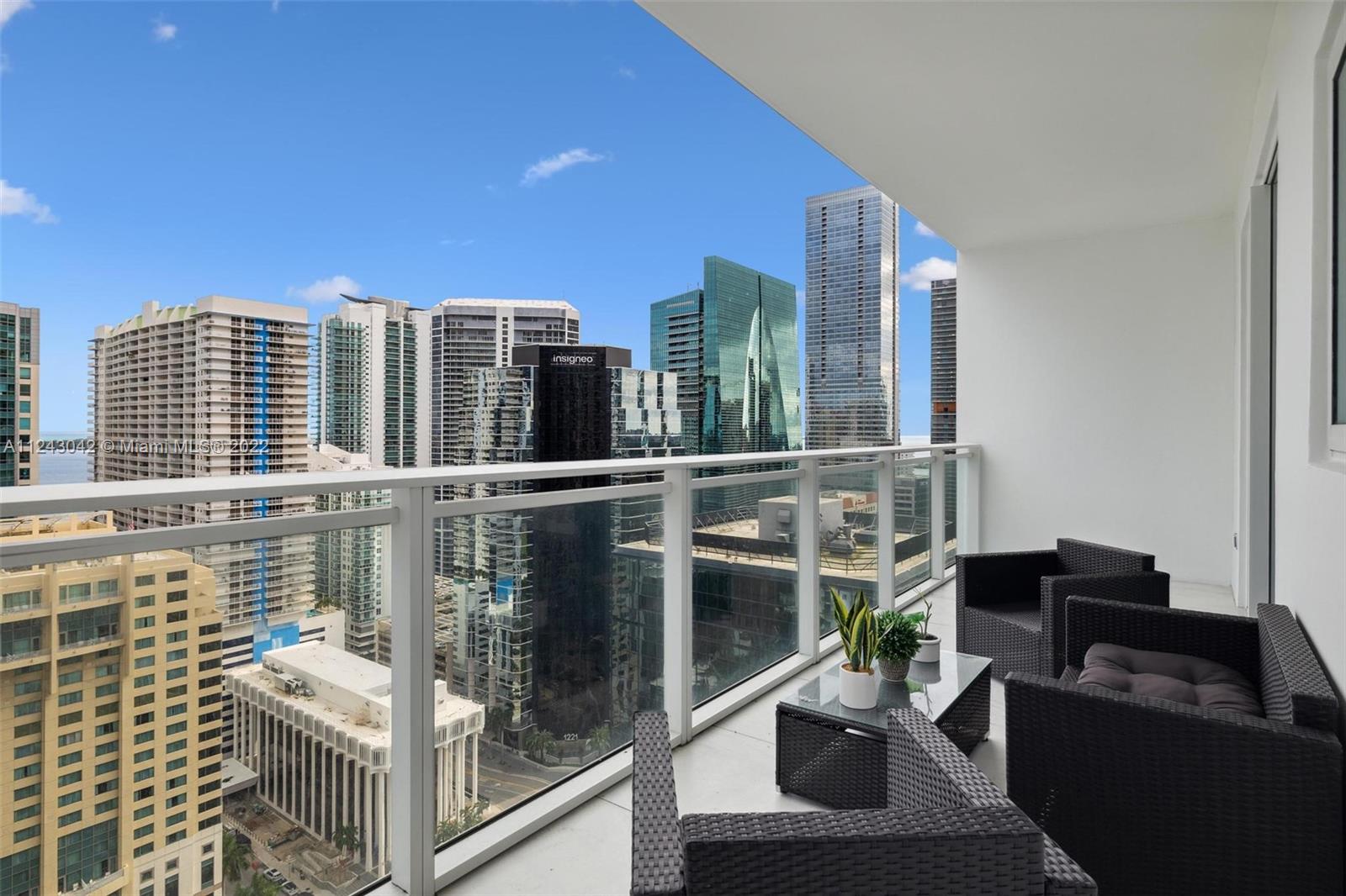 Priced to sell, best line in the building! Spectacular city and Bay view from the 28 floor. Beautiful and spacious 2 bed/ 2 bath with 9 ft ceilings. Corner unit. Italian porcelain floor. Designer kitchen cabinetry w/ Bosch appliances, wine cooler and modern cooking isle great for entertaining. Large master suite w/ plenty of closet space. Window screens and black outs thru out. Extra large balcony w / view of the Bay and City. Great option to live or as an investment to rent out. All amenity building with a touch of class and elegance. Amenities include a beautiful pool area, cabanas, outdoor fireplace,BBQ area,club room, childrens play room,fitness center,valet,concierge and business center. This is the best Brickell Ave has to offer. Located right in the center of the financial district.