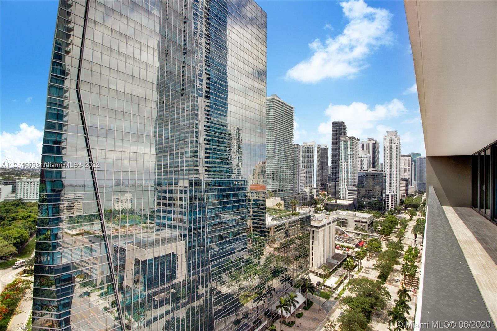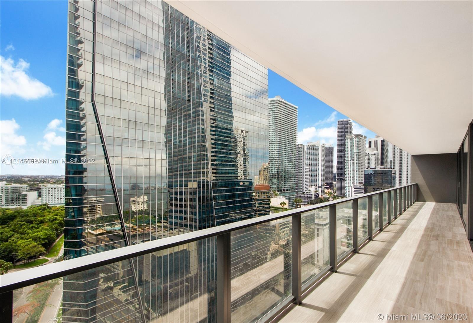 Experience the most exclusive Boutique building in the heart of Brickell. Enjoy views of the beautiful City of Miami, Downtown, skyline, and sunset from this 2 Bed 2 Bath Luxury apartment. Split floor plan with 9' ceilings, marble flooring, expansive terrace, & summer kitchen. Custom Italian kitchen cabinetry, upgraded shower glass doors, sleek top of the line Subzero and Wolf appliances, built in smart sound system, Apple home technology, blinds and blackouts. Unit has 2 parking spaces. Resort style amenities-infinity edge pool, Jacuzzi, State of the Art Gym, 24-hour Concierge service, valet parking, restaurant inside building offers wine, beer, & snacks. Valet & security. Building was designed by world renowned Architect Carlos Ott. Vacant and easy to show.