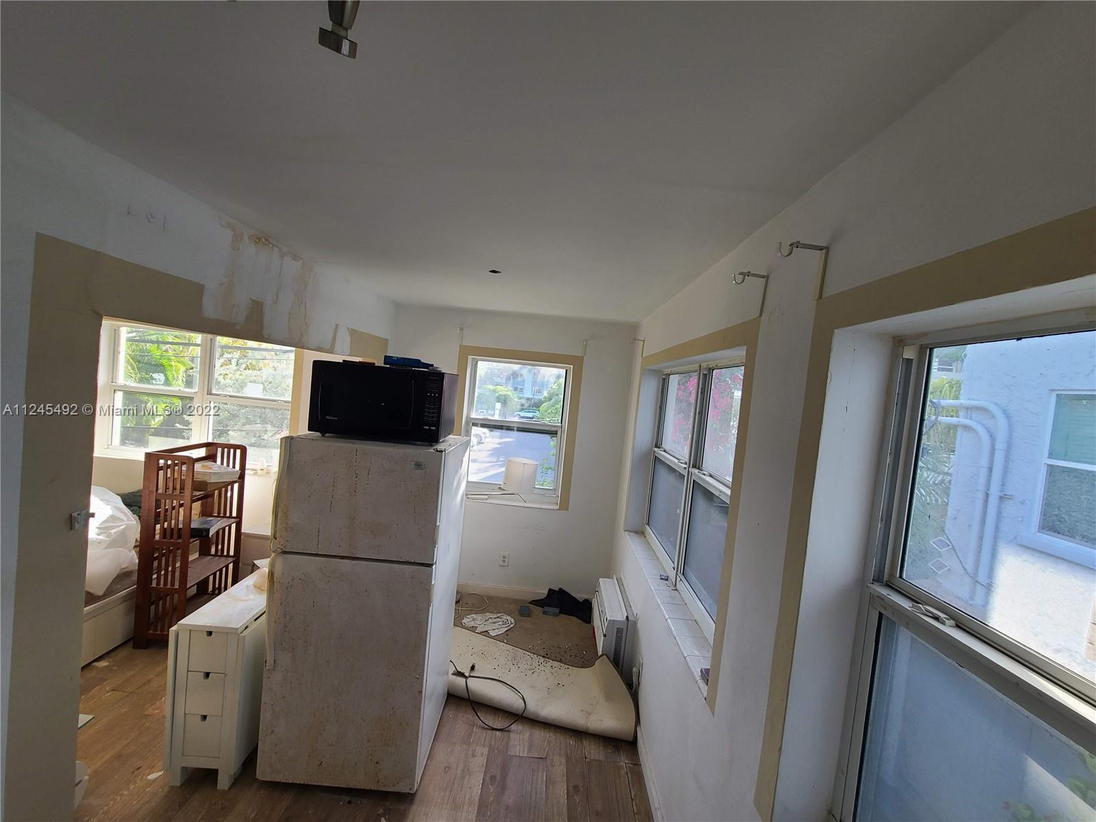 Handyman Opportunity! Sold AS-IS, HOA is changing the roof which caused water damage to the unit. Top floor corner unit with open view, impact windows, lots of potential. Fantastic location 1/2 block from Lincoln Road and lovely gated common grounds. Call listing agent for additional info or showings.