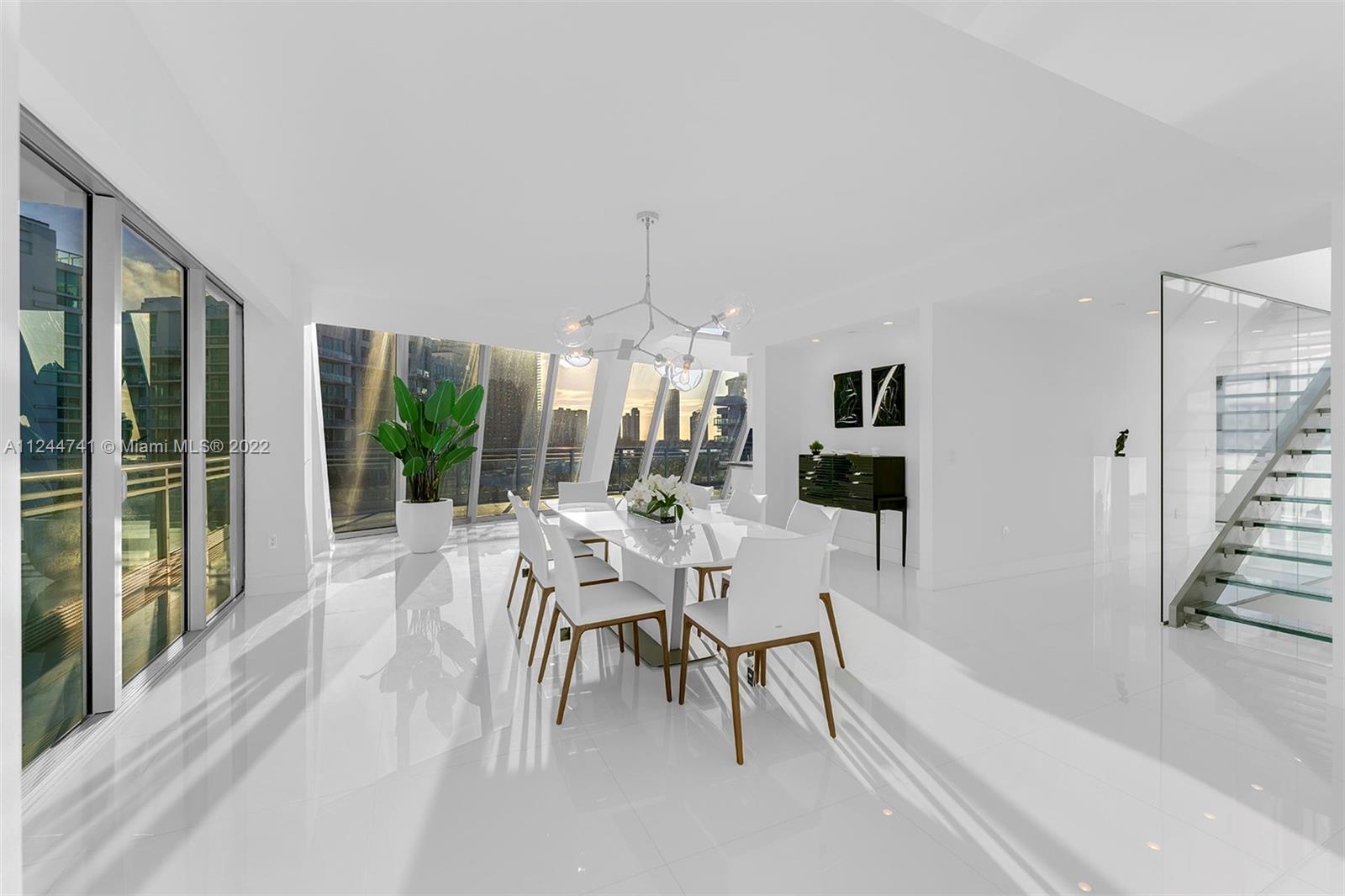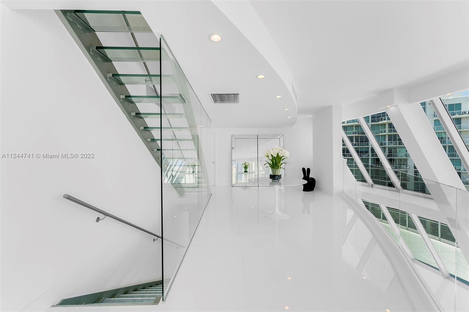 Modern Cutting-Edge Penthouse in the prestigious Artech Aventura. This architectural masterpiece is the only unit with 116' private dock for your vessel. Discover a beautiful 5 bedroom and 5/1-bathroom condo offering impressive floor to ceiling panoramic impact windows with gorgeous intercoastel/ocean views. Enter through the second level and find an open formal living room and kitchen w/ Subzero and Miele appl, formal dining and large junior suite with sitting rm/office. Glass staircase takes you to first level which offers 2 en-suite bedrooms and on the third level find a spacious loft area, master suite with sitting room/office and an additional bedroom. Fourth level offers a private roof top terrace/sun deck. State of the art amenities including valet, tennis court, 24hr/sec, etc…
