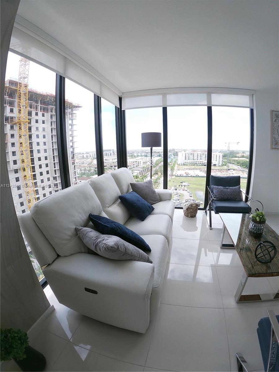 LOCATION, LOCATON & LOCATION!!! Live in the heart of Downtown Doral.Turn-key, bright and stunning corner 2beds/2baths condo ready to move in, with luxury furnishing. Double balcony apartment where you can enjoy the panoramic city views. Porcelain floor tiles throughout the unit, stainless steel appliances, quartz countertop, Italian cabinets, full size washer/dryer, only of the few units with 2 parking spaces. This beautiful building offers valet parking, amazing infinity pool, fitness center, spinning area, sauna, multi-purpose social room, children's playroom. Internet, cable, water included. Resort-style amenities. schools A+, also walking distance to restaurants, supermarket, parks, schools, City Hall, and shopping. Don't miss this opportunity!!!