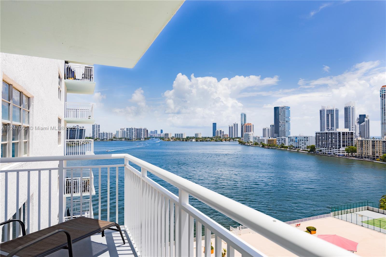 Enjoy this very spacious 2 bedroom, 2 bath unit in the heart of Sunny Isles. You will find stunning bay views from every window, along with being able to enjoy the fresh air from the wrap around balcony. The views from the balcony include the bay and pool. Prime location; within walking distance of sandy beaches, fine dining, parks and shopping. Enjoy the building amenities which include pool, game room, gym , and tennis court. Includes parking. Pet Friendly.