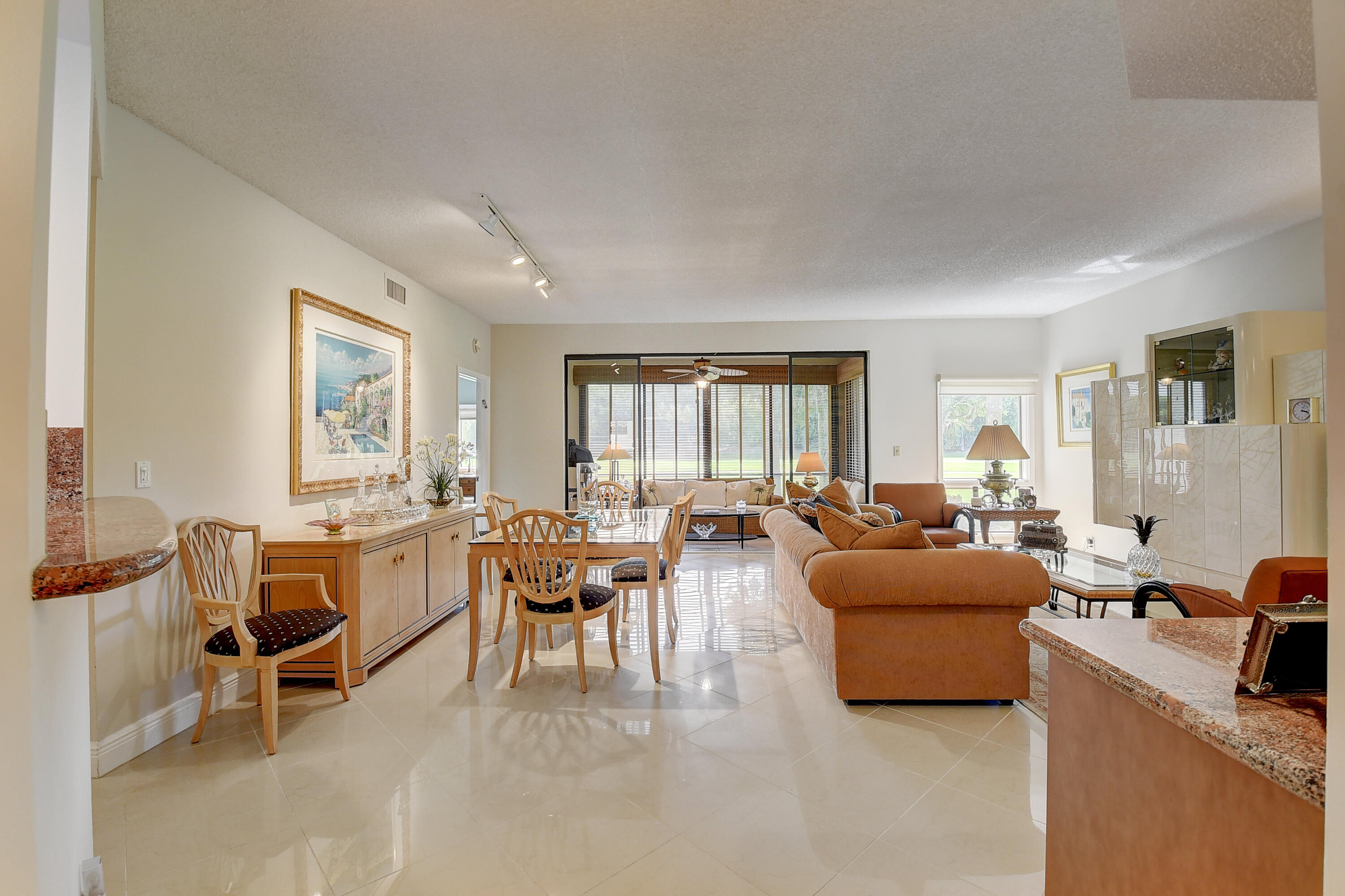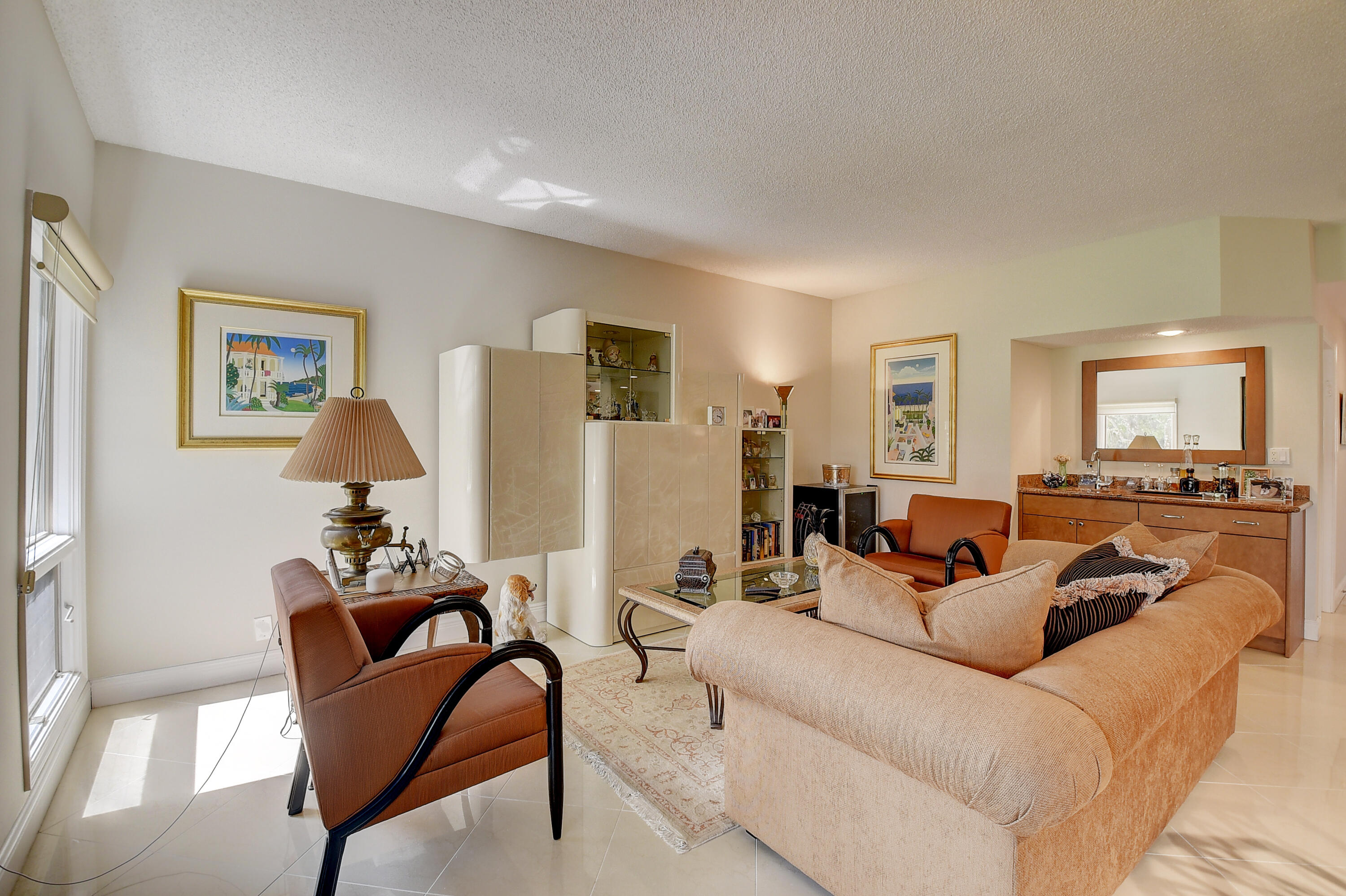 SEIZE THE OPPORTUNITY ! DRAMATIC PRICE REDUCTION ! THIS HAS IT ALL ! UPGRADES GALORE ! NEW ROOF ! JUST MAKE AN OFFER !1st floor. Large porcelain tile (on diagonal) Redesigned custom kitchen w/ ss appliances & granite counters. Unique custom wet bar. 3 true bedrooms + Florida room/den. 2 bedrooms w/ en suite baths. Custom closets. Seller to give carpet replacement credit w/acceptable offer. Both bathrooms remodeled , & 'Smart' toilet in 2nd bathroom. Direct golf view. Newer roof ! Covered reserved parking at your door. Storage closet in courtyard. Steps to beautiful resort style community pool. Club membership NOT MANDATORY, but readily available w/ no equity buy-in. Class A schools, close to shopping, services, houses of worship. 5 miles to the beach. MOTIVATED SELLER