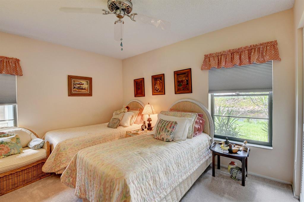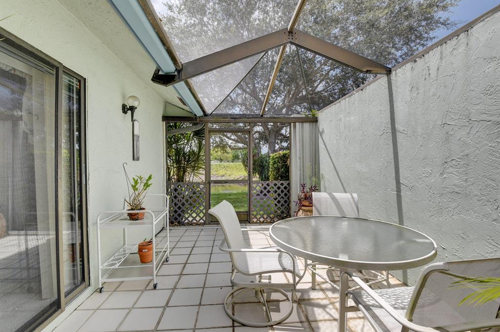 This lovely villa is located in the highly desirable River Oaks in Boca Raton, FL. There is a screened outdoor entry and welcoming foyer inside. Light tile in main living areas. There is a vaulted ceiling in the living room. It also is very light and bright and features a sliding glass doorto a large screened t patio overlooking the canal. Dining Room has a custom mirror and a sliding glass door entry to a screened, tiled patio. The kitchen has great cabinet space and a small breakfast bar and also has sliding glass doors to a screened patio. All bedrooms have light beige carpeting. The master bedroom is very spacious and has a large walk in outfitted closet. Master Bath features a double sink and walk in shower. There is also a screened door leading to a large tiled in screened patio.